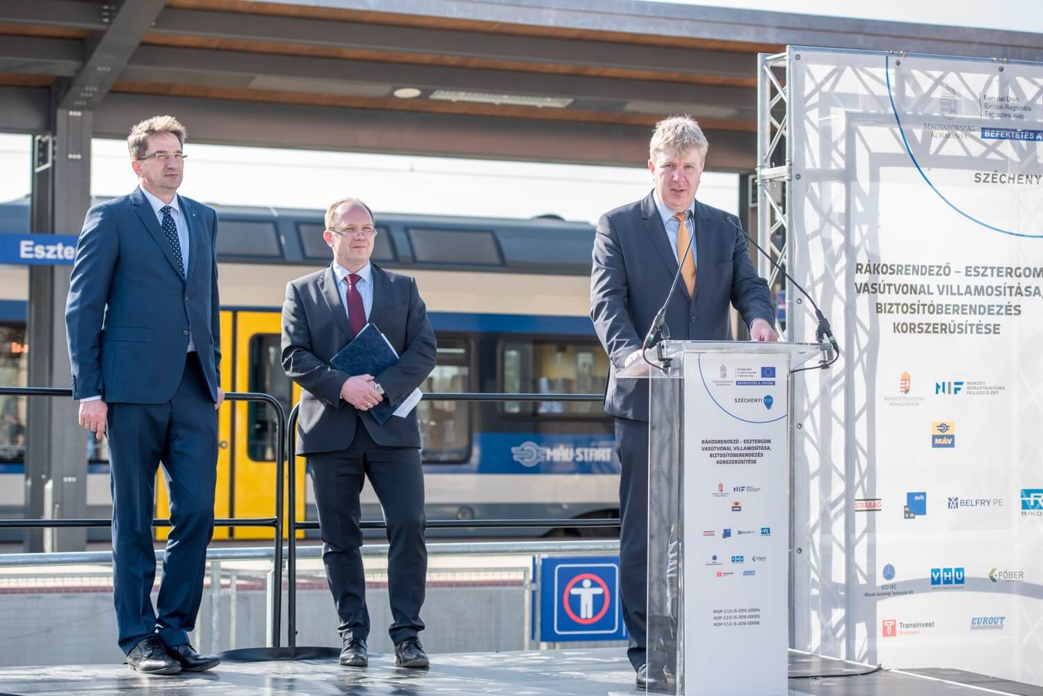 A terveknek megfelelően április 9-étől korszerű villanyvontatású FLIRT motorvonatok közlekednek Budapest és Esztergom között. A budapesti Rákosrendező és a Duna-parti város közötti 51 kilométeren 2016 nyarán kezdődtek meg a villamosítási és kapcsolódó építési munkálatok a Strabag Vasútépítő Kft. vezette konzorcium kivitelezésében, az MVM OVIT Országos Villamostávvezeték Zrt. és TRSZ Kft. részvételével. A korabeli sajtó szerint már 1951-ben is tervezett beruházás állásáról Esztergom vasútállomásán tájékoztatták a sajtó képviselőit.