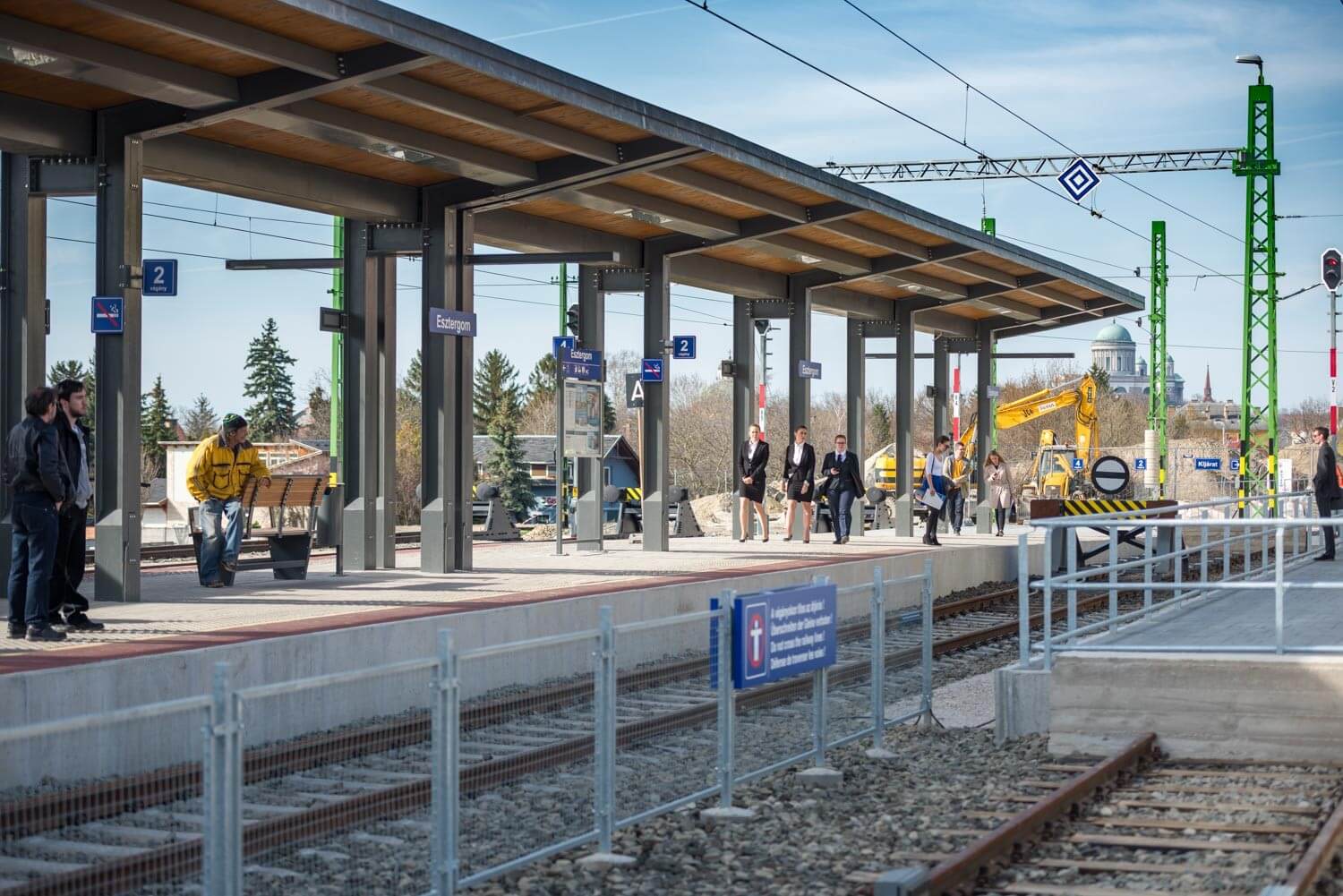 A vonal korszerűsítésével egyidejűleg Esztergom állomás is átépült. Még zajlik a buszforduló és hozzátartozó megközelítő utak, a Baross utca és az állomási előtér átépítése is, továbbá két új körforgalom is elkészül a következő hónapokban.