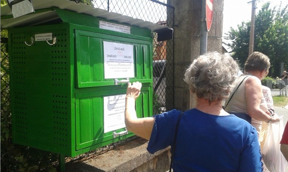 Lassan egy éve, hogy napról napra megtelik és rendre ki is ürül a váci deákvári plébániatemplom kerítésére felszerelt zöld doboz.