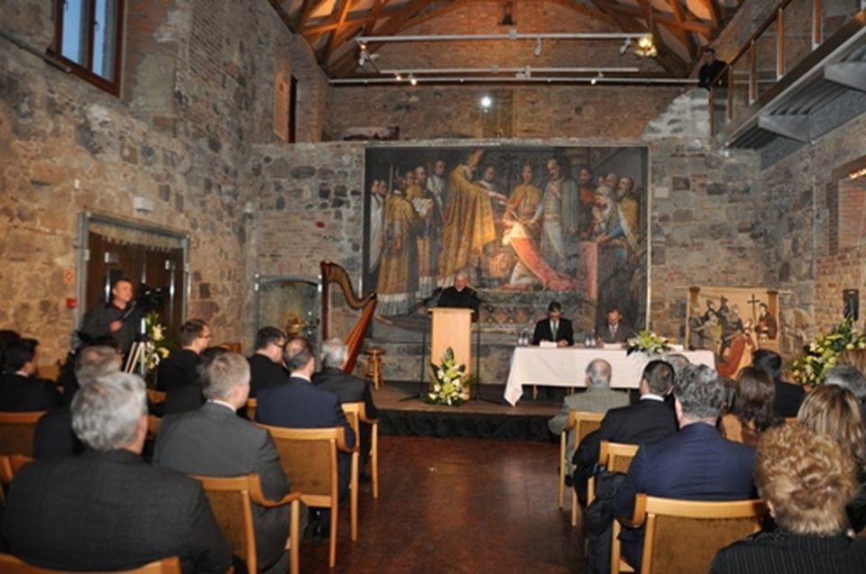 Kövér László házelnök - aki a szervezők közlése szerint betegsége miatt nem tudott részt venni a rendezvényen - előadásának szövegét Kiss-Rigó László megyés püspök, a Rudnay Sándor Alapítvány kuratóriumának elnöke, az emléknap szervezője olvasta fel.