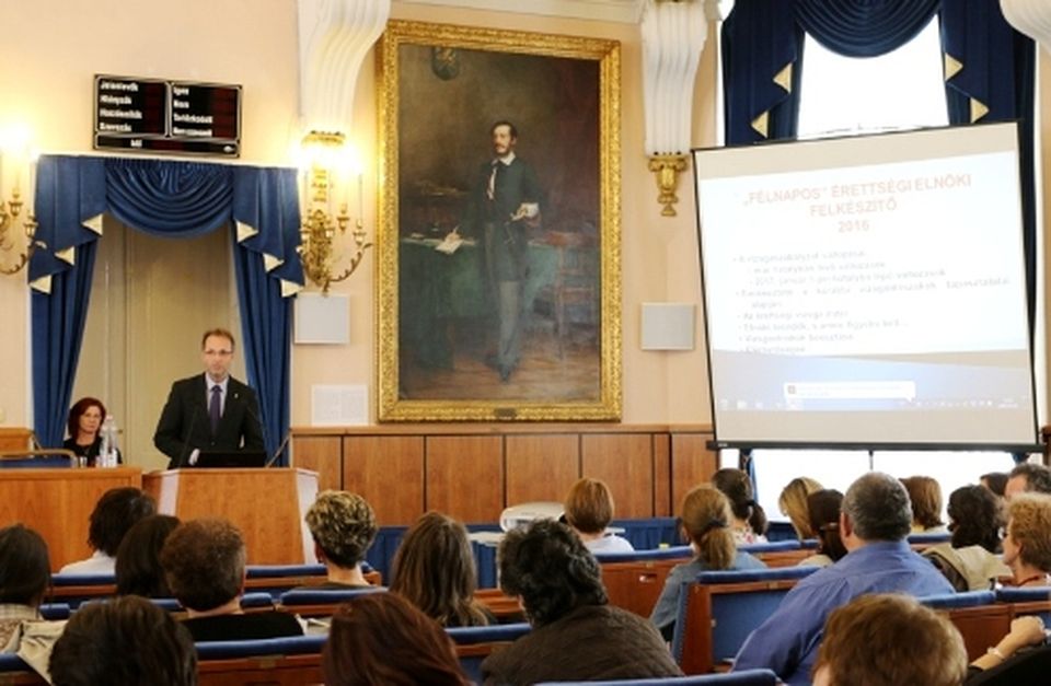 Érettségi elnöki felkészítőt szervezett a Pest Megyei Kormányhivatal Építésügyi, Hatósági, Oktatási, és Törvényességi Felügyeleti Főosztálya Oktatási Osztálya Budapesten. A Városháza Kossuth Lajos dísztermében összesen közel négyszáz olyan pedagógus gyűlt össze, akik vállalkoztak az érettségi vizsgák nagy felelősséggel járó elnöki feladatainak ellátására.