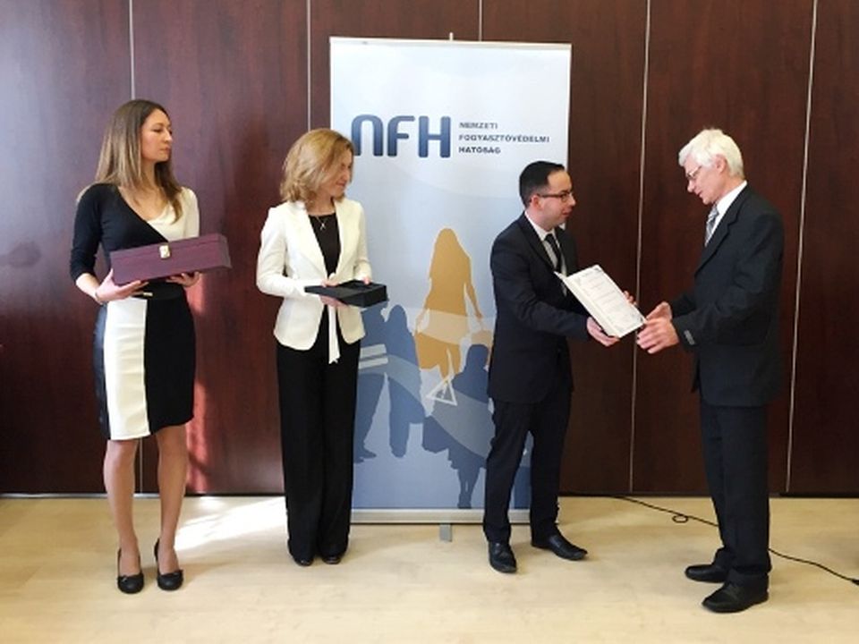 A Fogyasztók Világnapja alkalmából dr. Szente István, a Nemzeti Fogyasztóvédelmi Hatóság főigazgatója „Fogyasztóvédelemért” szakmai díjat adott át Dolozselek Gyulának, a Pest Megyei Kormányhivatal Fogyasztóvédelmi Osztálya felügyelőjének. A Nemzeti Fejlesztési Minisztérium részéről munkatársunknak Keszthelyi Nikoletta fogyasztóvédelemért felelős helyettes államtitkár gratulált.