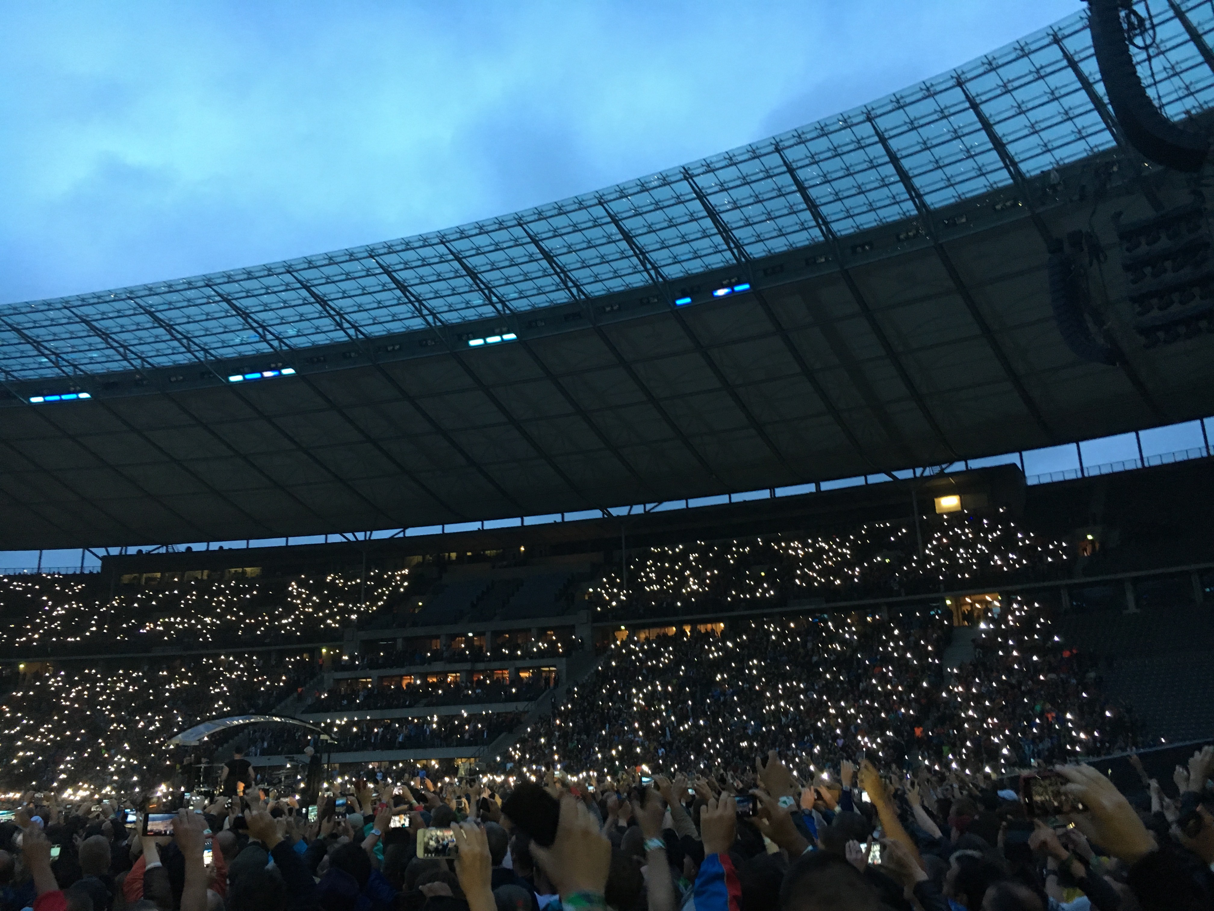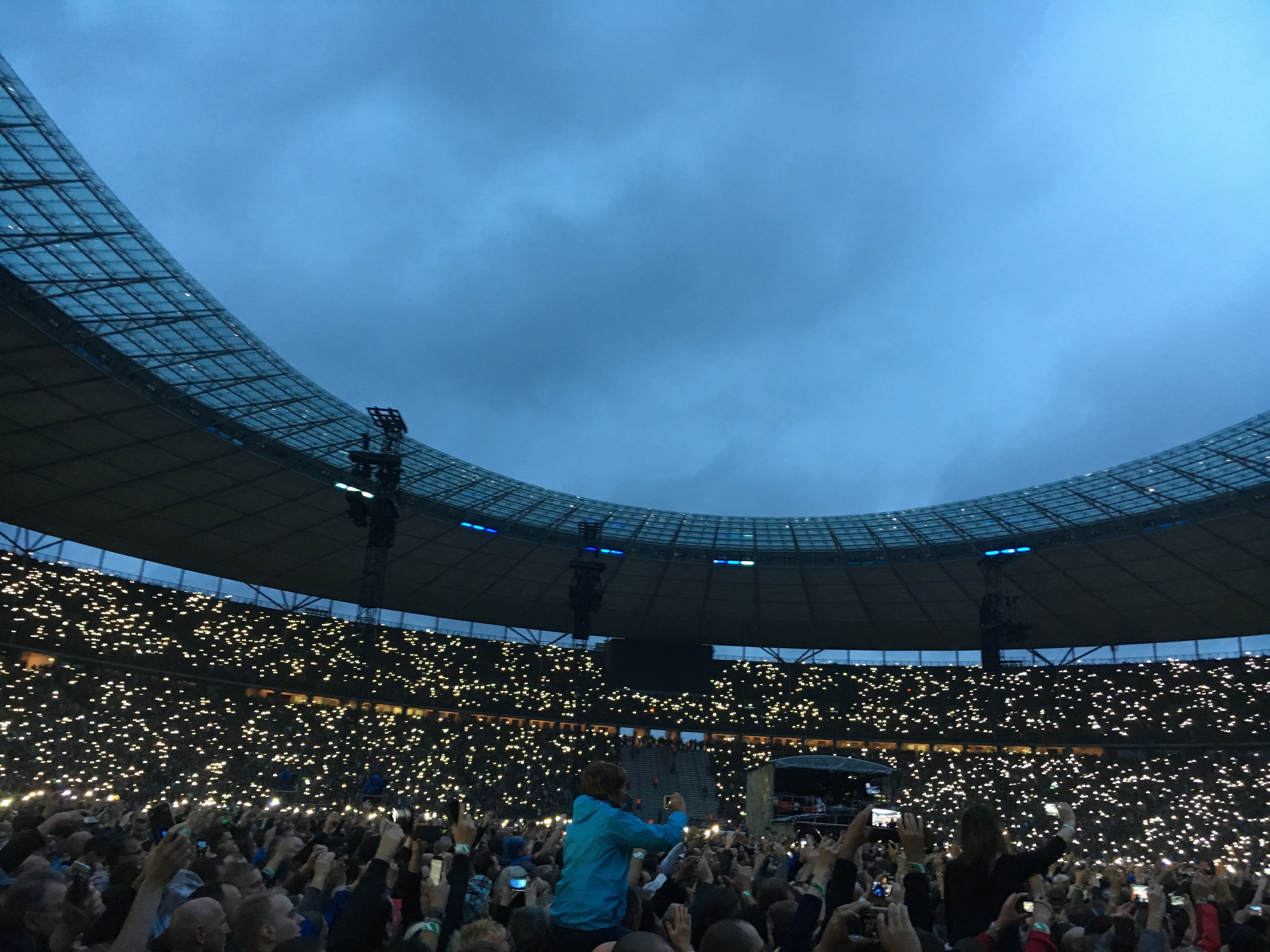 Érdemes megnézni a fenti videót 4:42-nél, hogy szakad az eső! Az első szám végétől így szakadt - akkor fedték le Larry Mullent és a dobokat, a többi zenész fittyet hányt az időjárásra - a koncert legvégéig. Teljesen biztos vagyok benne: bárkit megkérdeznénk, aki ott volt Berlinben, azt mondaná: még mindig a hatása alatt van a koncertnek. Jól tudom, mert még mindig itt van velem, nem múlik, és nem egyéni érzés. Leírhatatlan közös érzés. Kijön egy 57 éves rockzenész egy zakóban a pár perces esőszünetben, aztán rászakad az ég, és szakad két és fél órán át. Nem lép az előzenekar útjára („fucking rain!” – nagyon sokszor elmondva egymás után), hanem csak annyit mond: „Ez az eső összeköt minket!” „Köszönöm a kitartásotokat!”