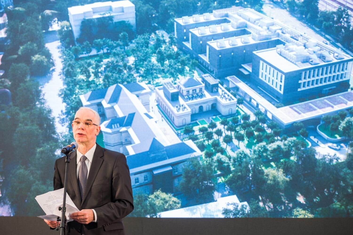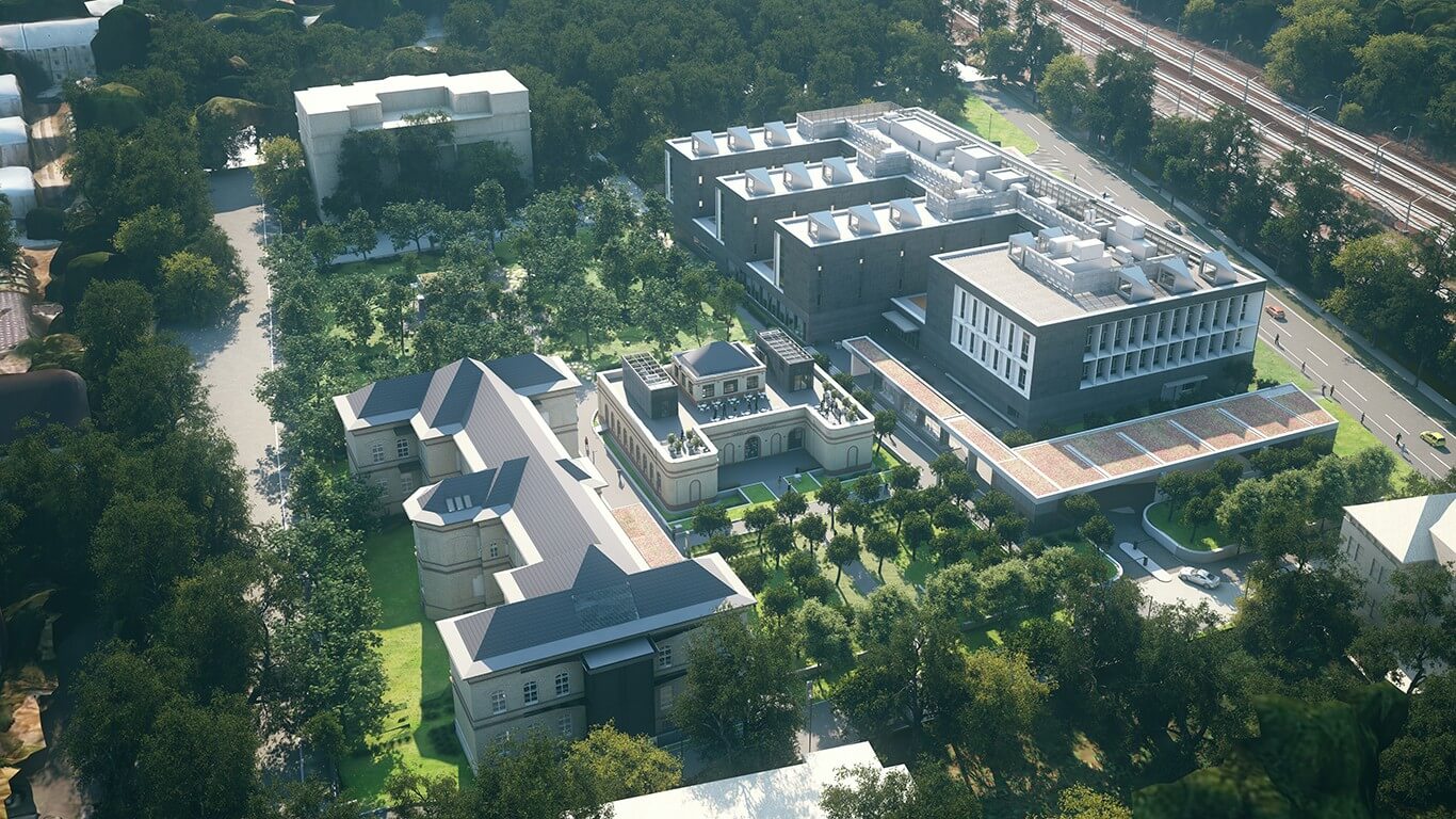 A teljes komplexum – melynek a főépületen kívül a többi elemét is a Strabag kivitelezi - összesen öt épületből áll majd. A Narmer Építészeti Stúdió tervei alapján készülő fejlesztés a régi és új épületek összhangjára törekszik. Az új épület tagoltságával és anyaghasználatával illeszkedik a 19. századi, kisebb volumenű kórházi pavilon-épületekhez, egyszerű szerkezetével, klasszikus arányaival pedig az időtlenség karakterét idézi.