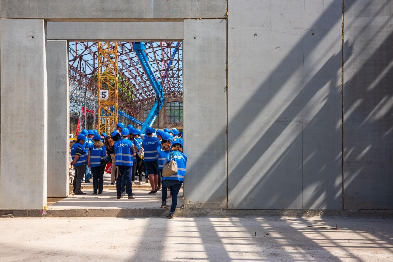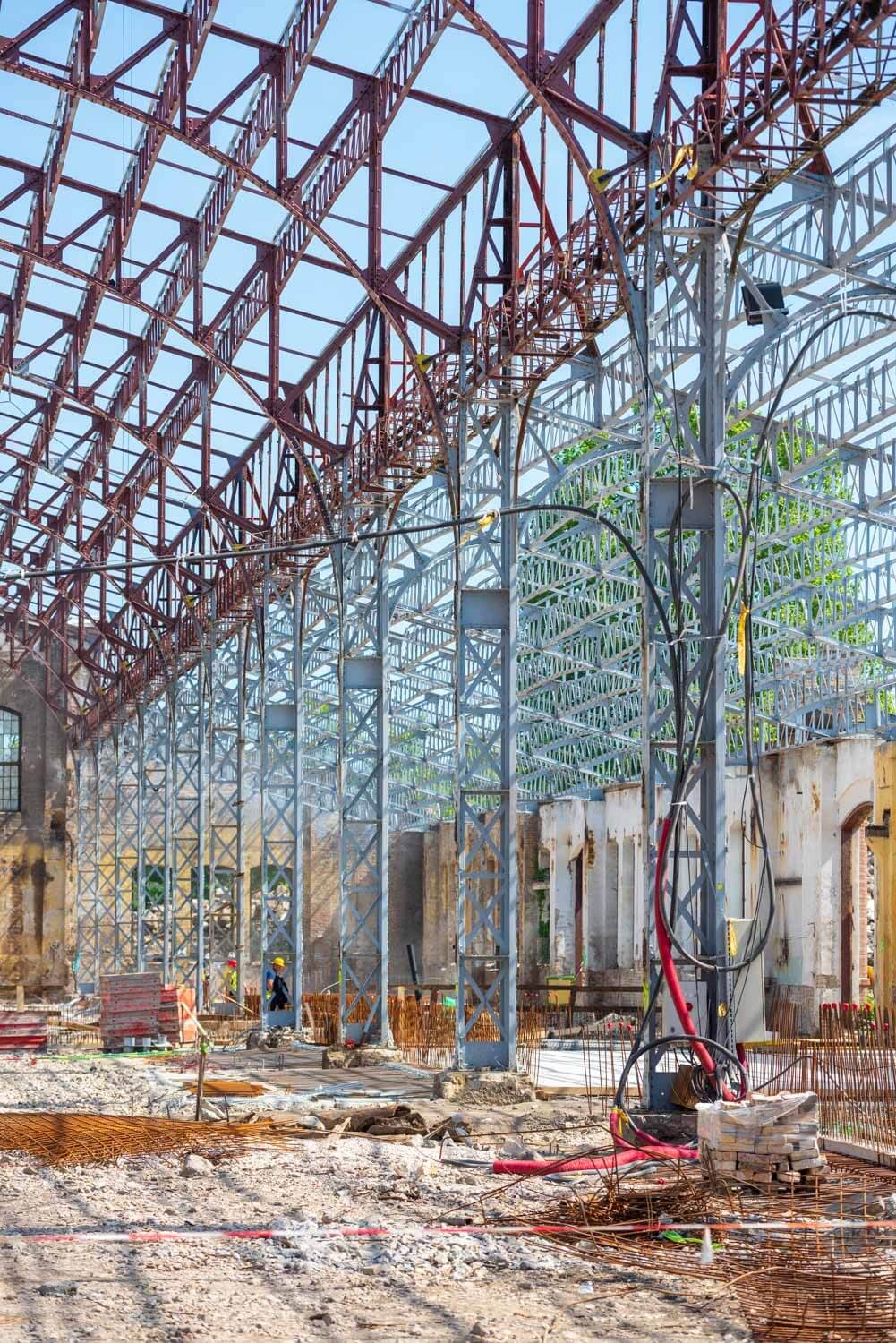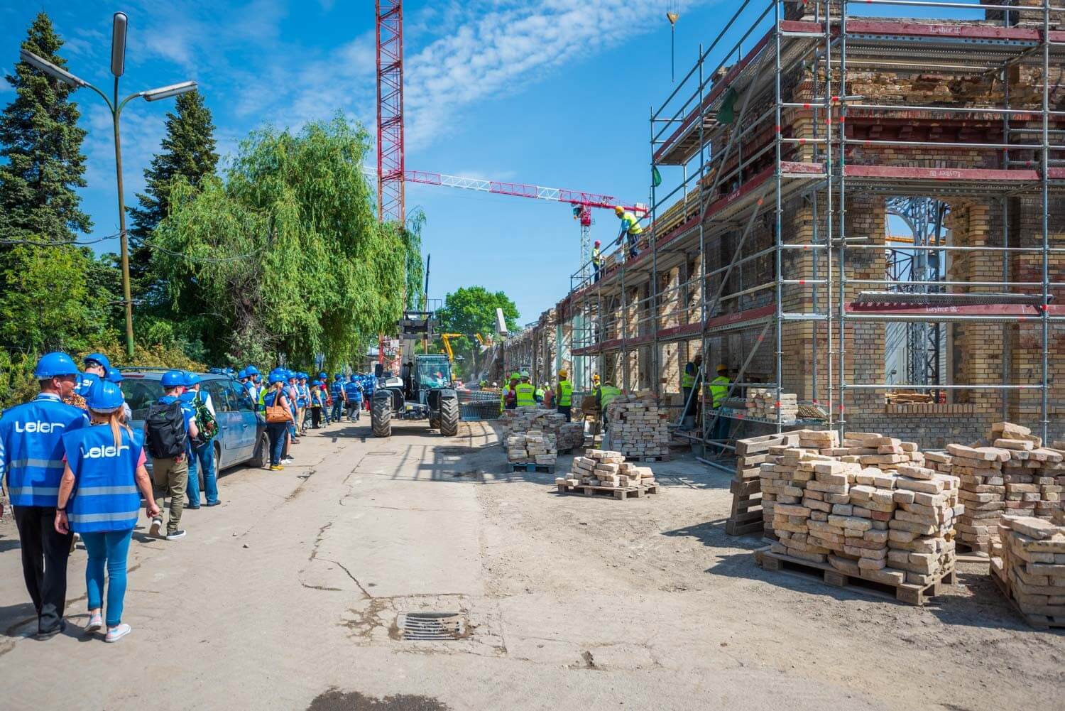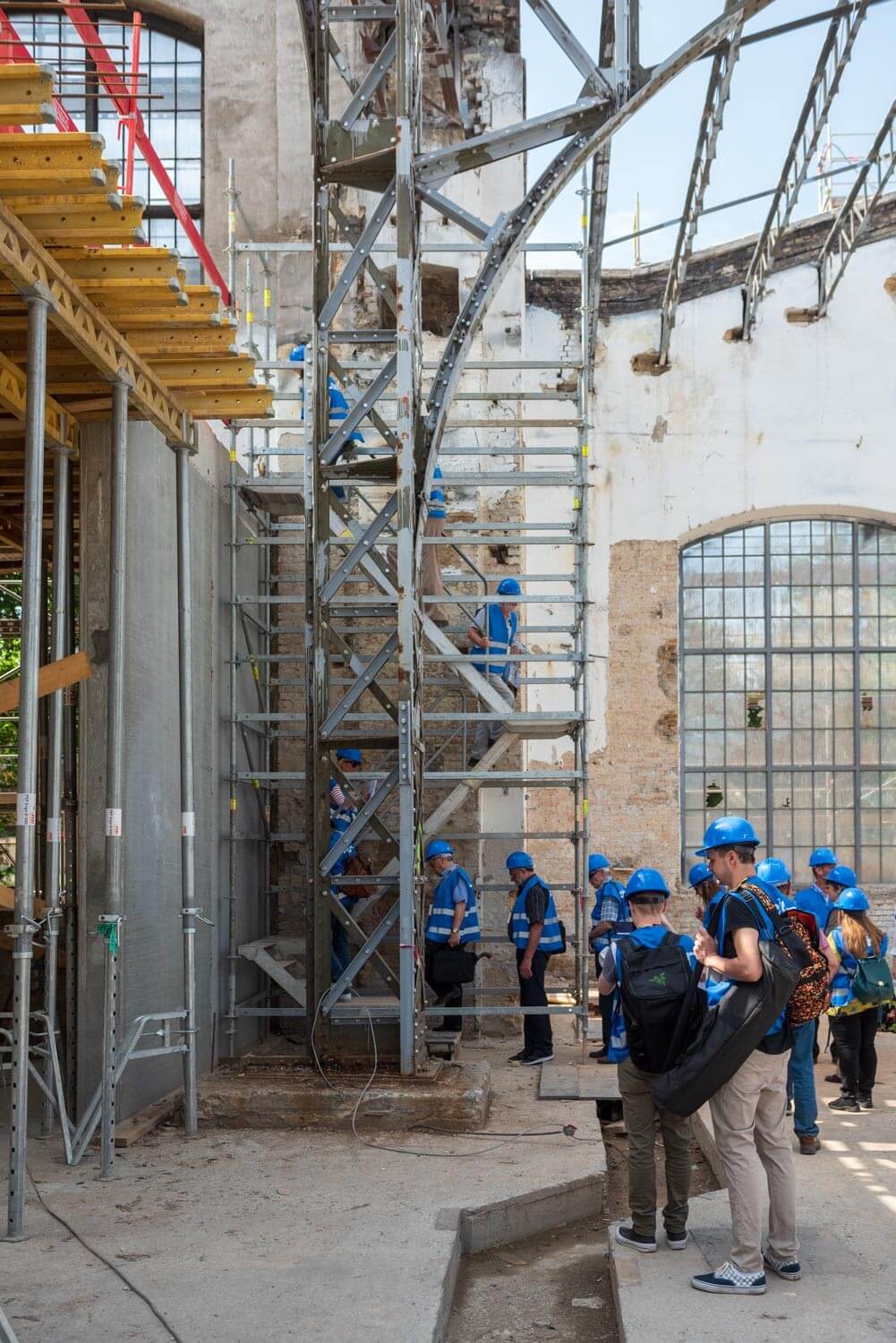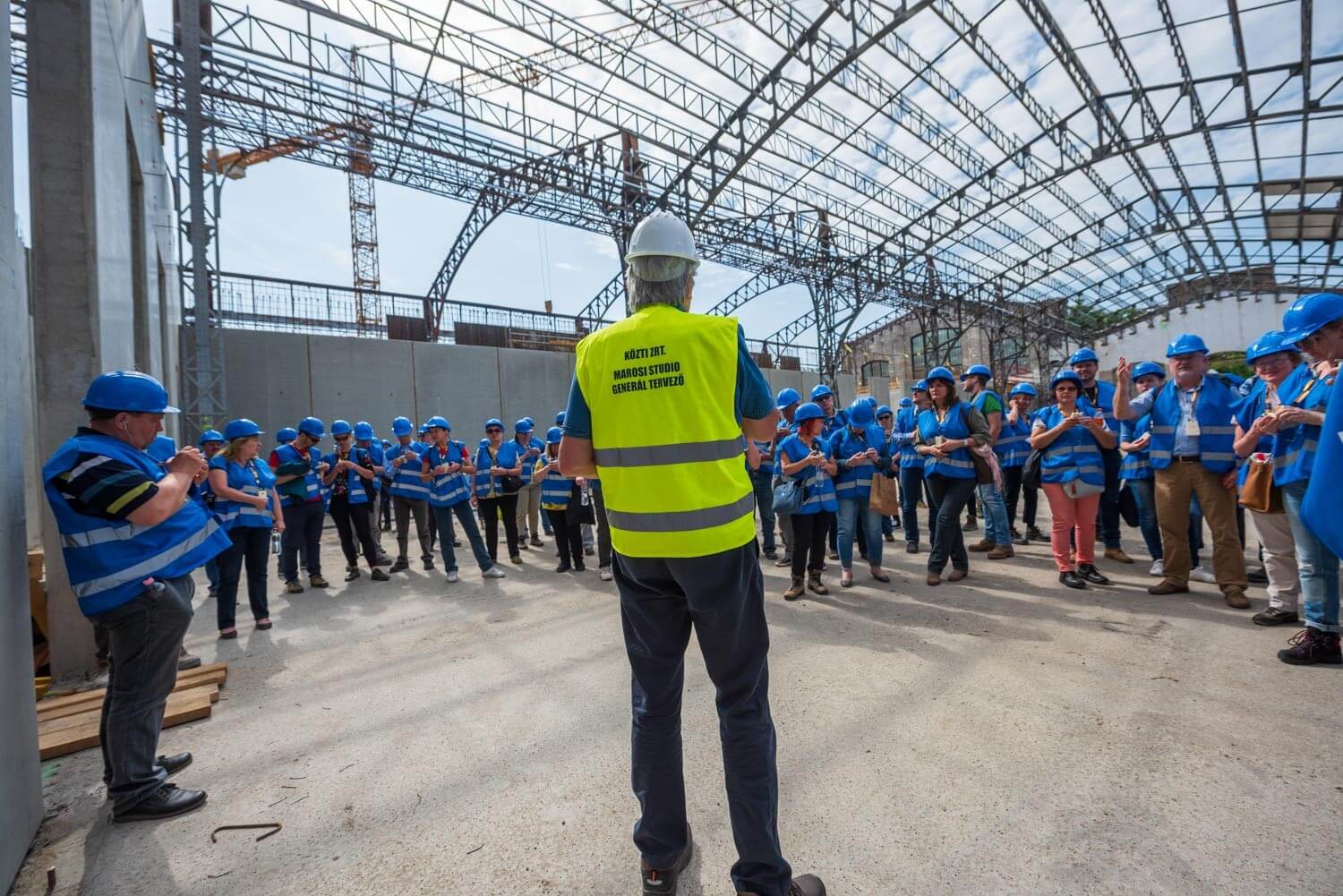 A Közti képviseletében részt vett a bejáráson Pernesz Ágnes vezető tervező is, aki számos érdekességre hívta fel a figyelmet. Elmondta többek között, hogy a hat hektáros területen számottevően sok bontást kellett végrehajtani, mivel rengeteg toldaléképület és súlyosan sérült épületrész tartozott a csarnokhoz. Előre így alig lehetett látni, hogy milyen az épület homlokzata, nem egyszer érte meglepetés a tervezőket és a kivitelezőket is. Mostanra már megkezdődhetett egyes esetekben az újjáépítés, más esetekben a téglafalak, -párkányok és -boltívek letisztítása, illetve bizonyos helyeken a szükséges vakolás. Az épület fő homlokzatát mindenképpen a tégla és nem a vakolt felületek uralják majd – emelte ki a vezető tervező.