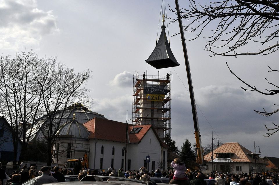 A katolikus templom építését a ZÁÉV Építőipari Zrt. és a Latarex Építő Zrt. kivitelezői konzorciuma tavaly májusban kezdte el, a kivitelezés most jutott el a toronysisak felhelyezéséig.