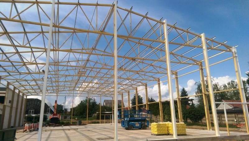 Augusztus elején felállításra kerültek a csarnokszerkezet tartóoszlopai, pillérei. Elkészült a szociális épület falazása, tetőszerkezete, vízszigetelése (ebben kapnak helyet az öltözők és a mosdók). Elkezdődött a tereprendezés, most pedig a belső szerelés, illetve a csarnokszerkezet burkolása következik. A kivitelezők szerint a decemberi véghatáridő előtt elkészülhetnek.