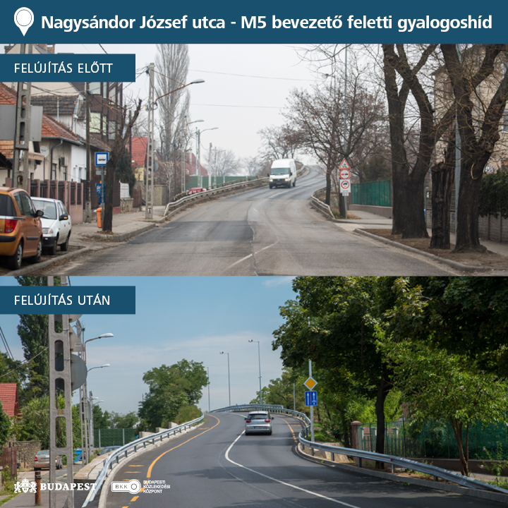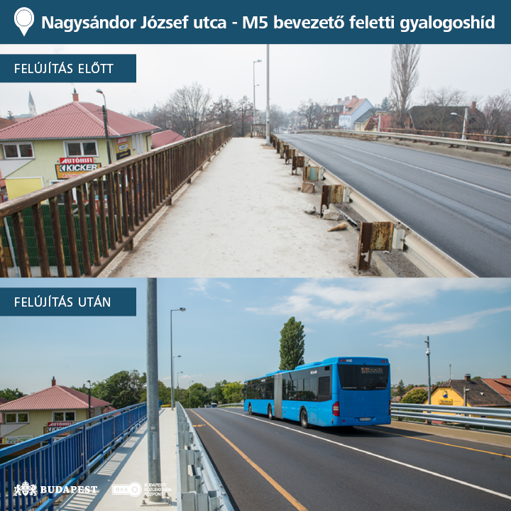 Befejeződött a XX. kerületi Nagysándor József utcai, vagyis az M5-ös autópálya bevezető szakasza feletti közúti híd felújítása - közölte a Főpolgármesteri Hivatal szerdán.