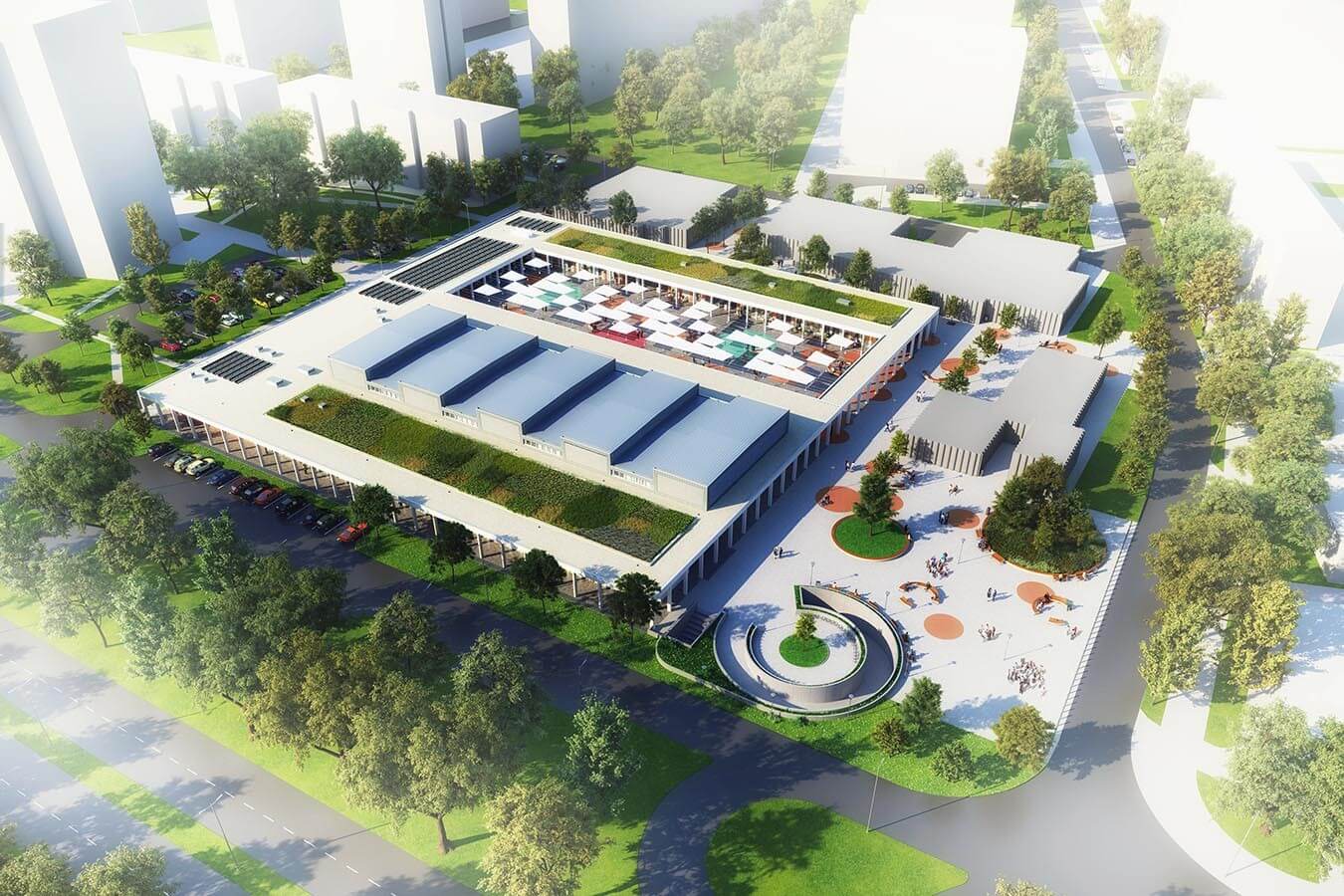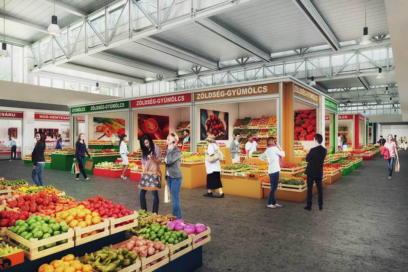 A földszintes, részben alápincézett épület, valamint a hozzá kapcsolódó közösségi tér az Óbuda Építész Stúdió Kft. tervei alapján valósul meg. Az összes szintterület 11.000 m² lesz, ebből a kereskedelmi terület körülbelül 3700 m². A piac a mostani helyéhez képest nyugatabbra, az egykori vállalkozói piac helyén fog megépülni. A támogatott tervek szerint egy fedett-nyitott őstermelői piaccal, pavilonos jellegű kiskereskedelmi, szolgáltatói, vendéglátó funkciójú épületrészekkel rendelkező piaccsarnok épül, melyhez egy 2500 m²-es, nyitott, de árnyékos, árkádos terekkel lehatárolt, többfunkciós burkolt tér kapcsolódik.
