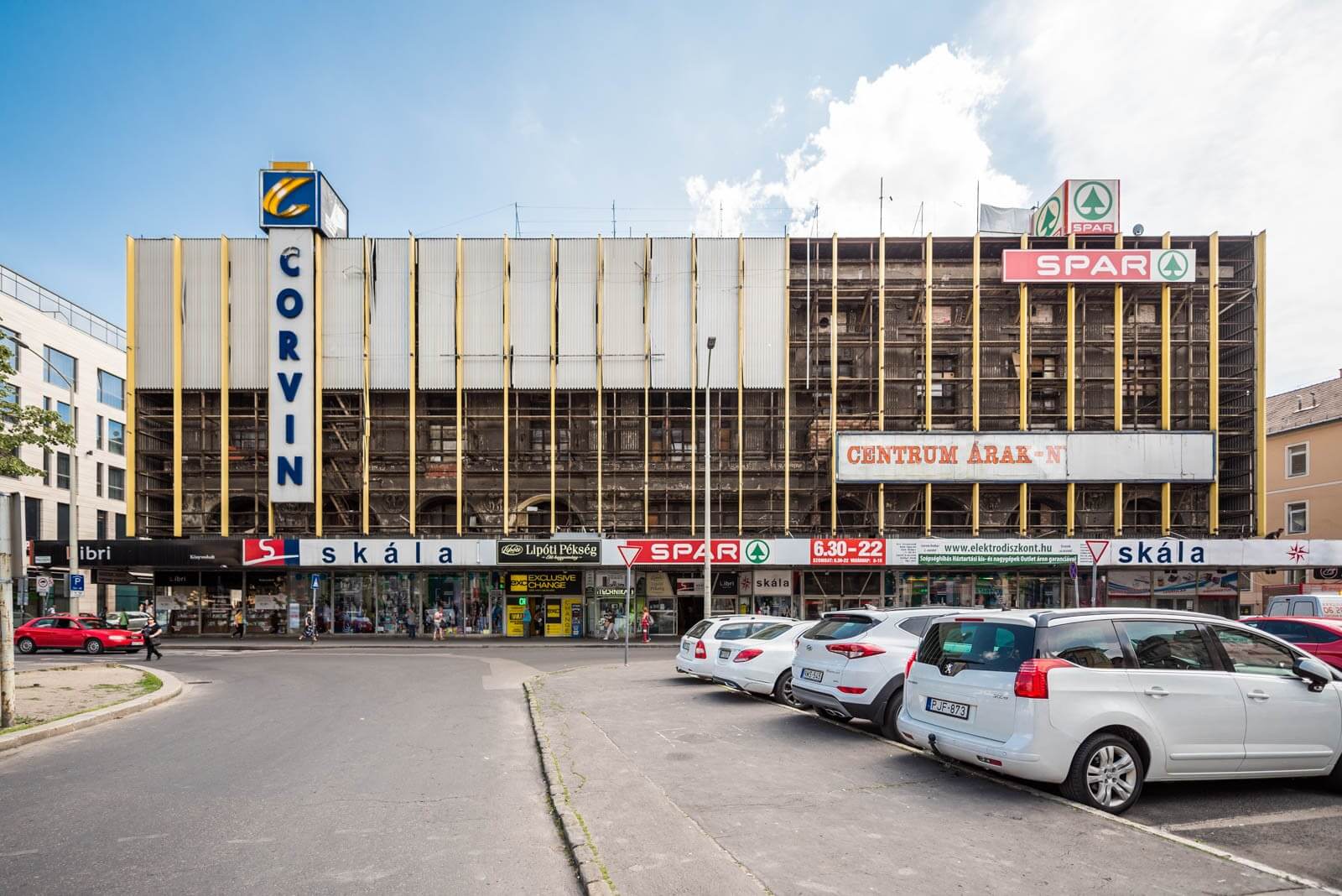 Megkezdődött a Blaha Lujza téri Corvin Áruház alumíniumborításának a bontása. Ahogy azt korábban jeleztük, az 1929-ben átadott épület Budapest egyik legrégebbi nagyáruháza. Csakhogy a historizáló, neoreneszánsz jellegéből mára semmi nem maradt. Az épület komoly károkat szenvedett a második világháborúban és az 56-os forradalomban, ám ezek javítása helyett 1968-ban egy alumíniumborítás került a homlokzatára.