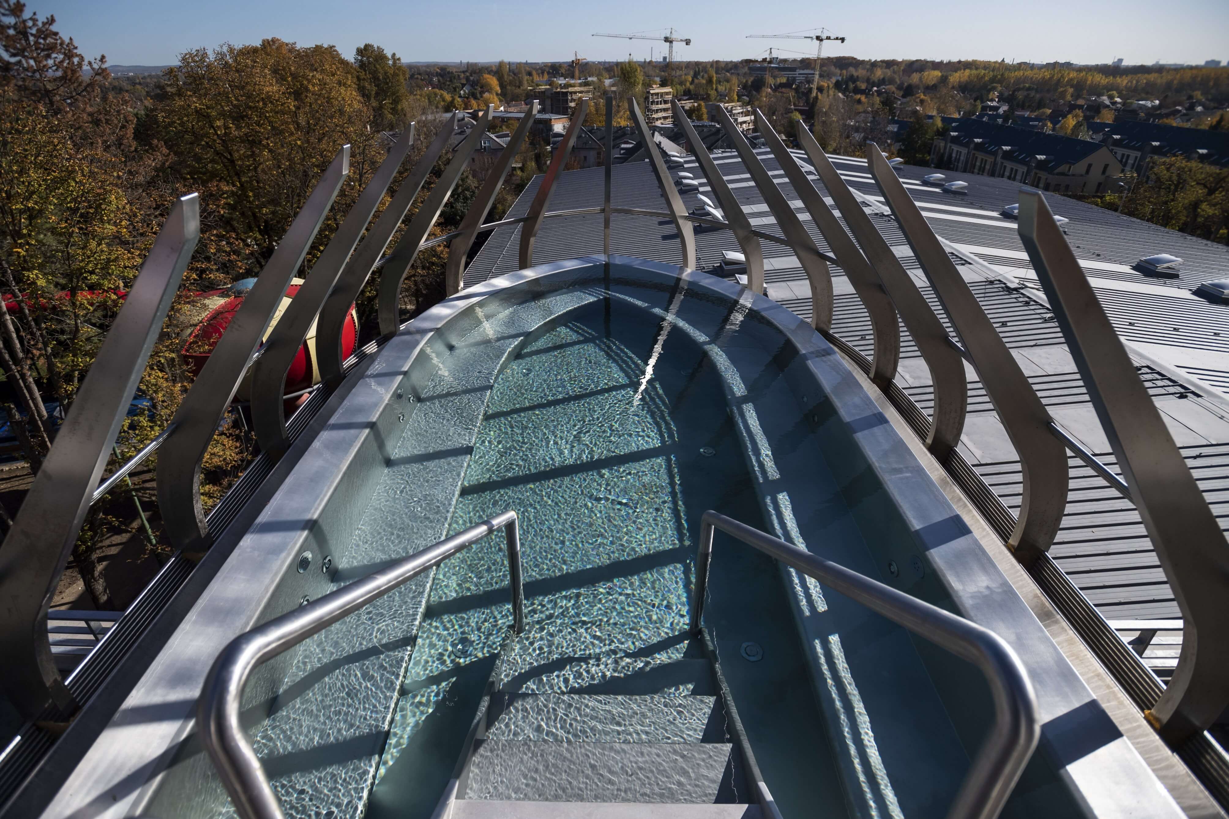 A wellness-részlegben élménymedencéket, pihenő- és masszázshelyeket alakítottak ki, "gyermekparadicsom" és szaunavilág is látogatható. A csúszdapark mellett a különleges építészeti megoldásokat tartalmazó panorámás élménymedence is megvalósult. A parkban játszóterek, napozóteraszok állnak a látogatók rendelkezésére. A fürdőbe került egy Barcsay Jenő által készített mozaik, amely a lebontott újpesti fürdőből került át.