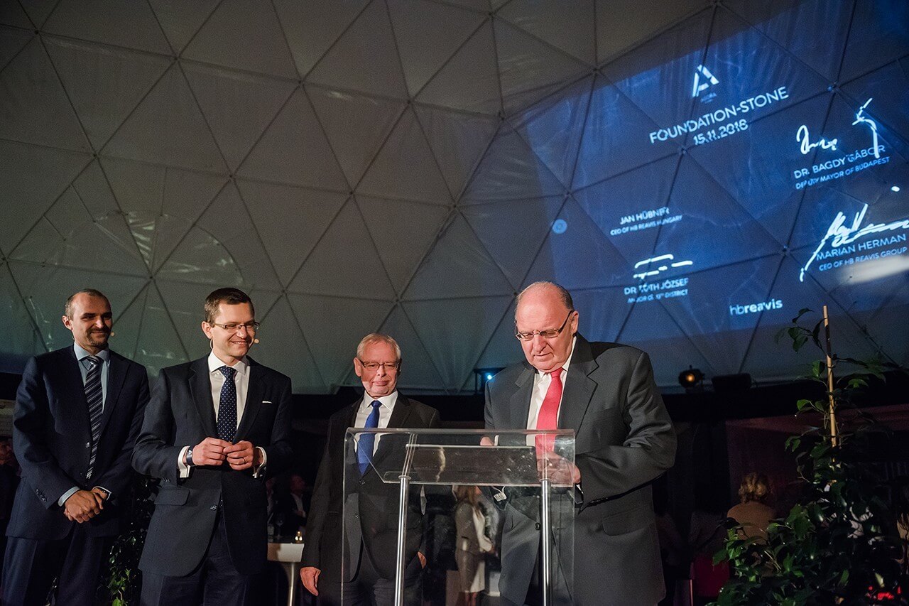 A Váci úti irodakorridor közvetlen szomszédságában rajtolt el az Agora Budapest földmunkákat is követő építkezési szakasza csütörtökön este. Az első fázisban két, összesen nettó 68 ezer négyzetmétereres irodakomplexumból álló iroda- és szolgáltatókomplexum alapkövét egy konténerekre daruval felhelyezett ideiglenes kupola alatt tették le. Az így létrehozott térben a lehűlő őszi idő ellenére is nagyszabású fogadással tudta a beruházó HB Reavis bemutatni a projektet, melynek később induló második fázisában még újabb irodatornyokat építenek fel majd.