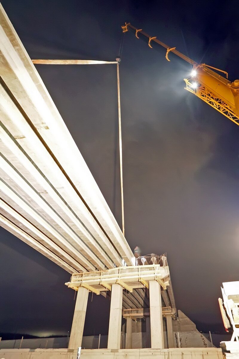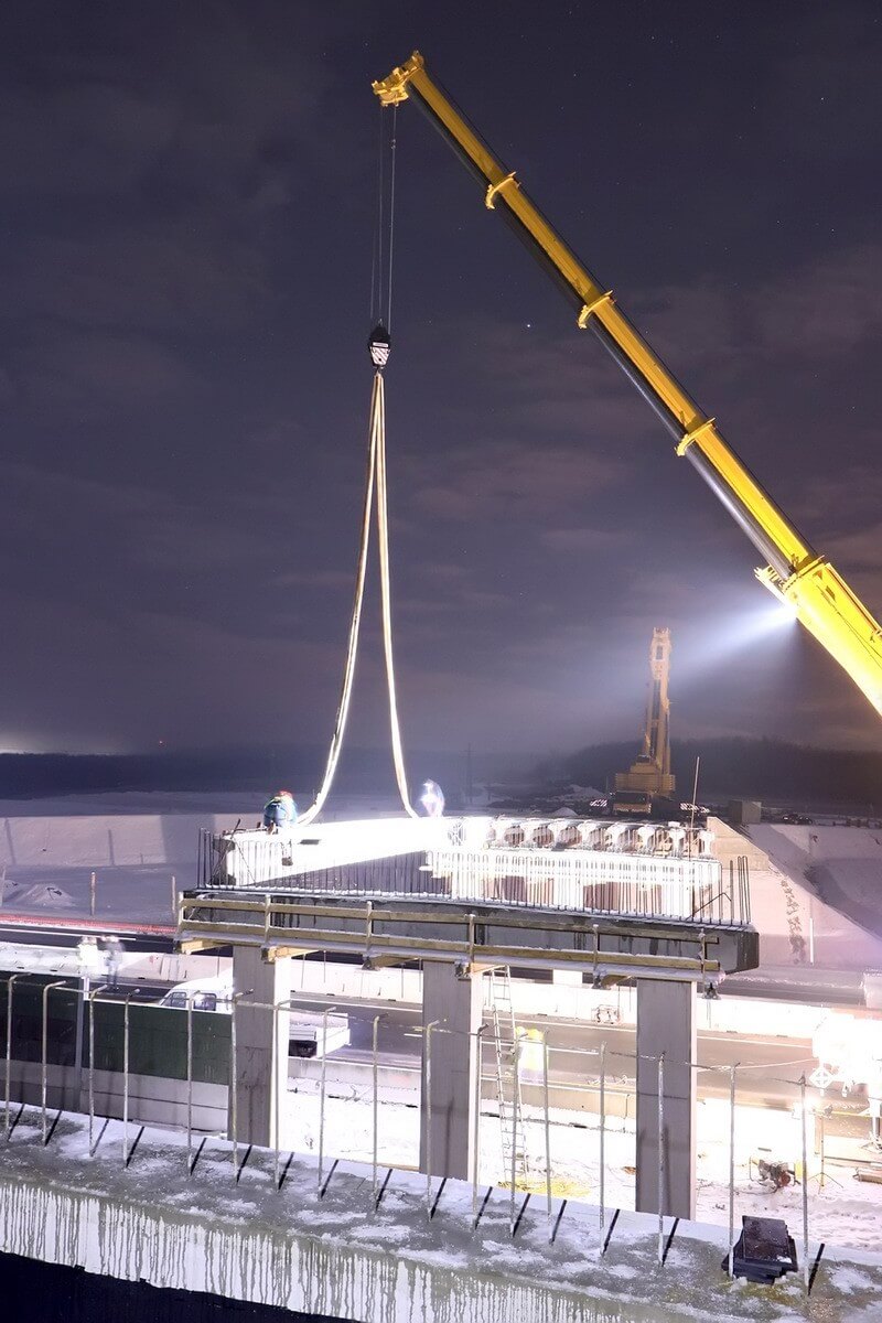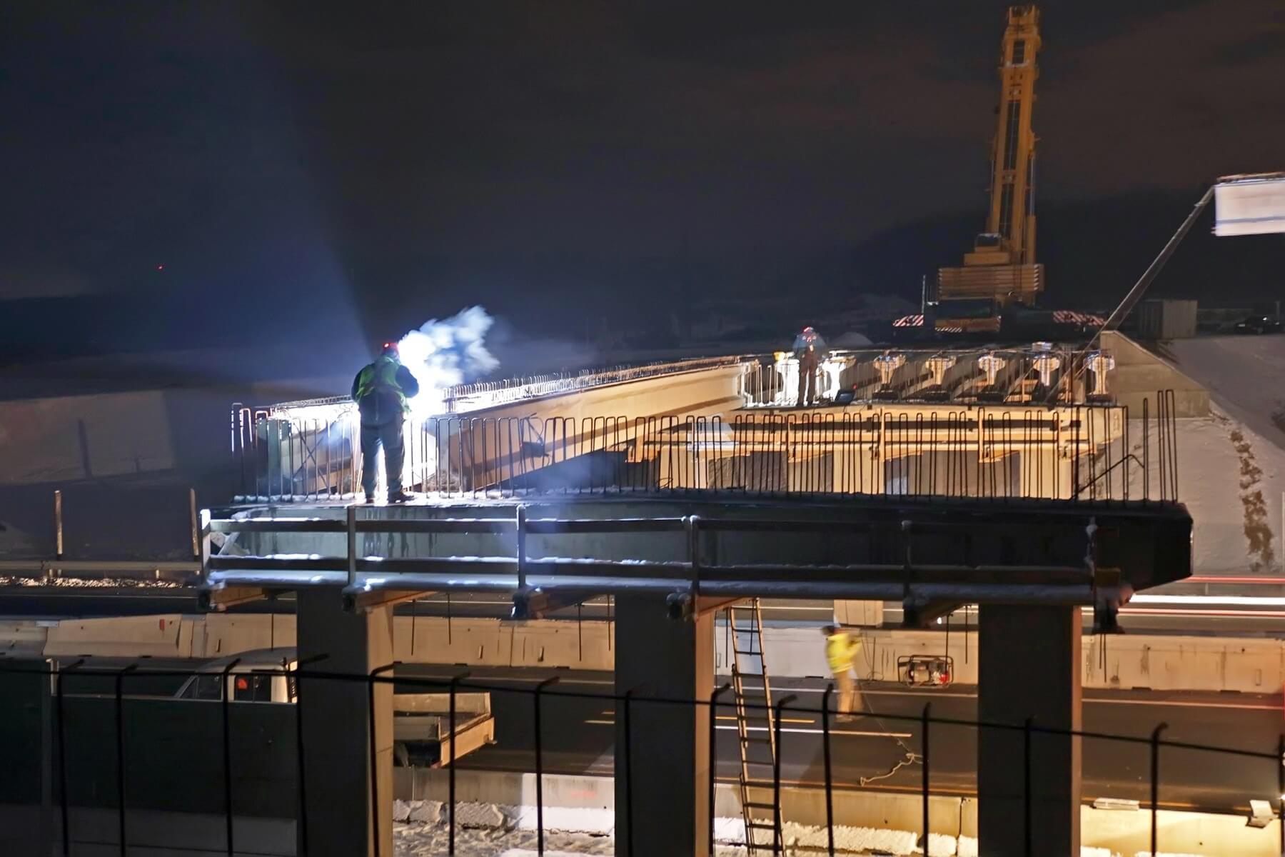 A KM Építő a műszaki előrehaladás miatt és technológiai okokból is fontosnak vélte a gerendák mihamarabbi beemelését, ezért mindent megtett a téli üzem alatt is megfelelő ideiglenes forgalmi rendért és organizációért.