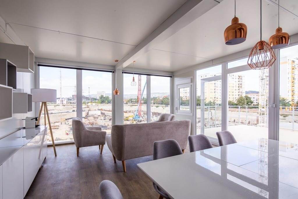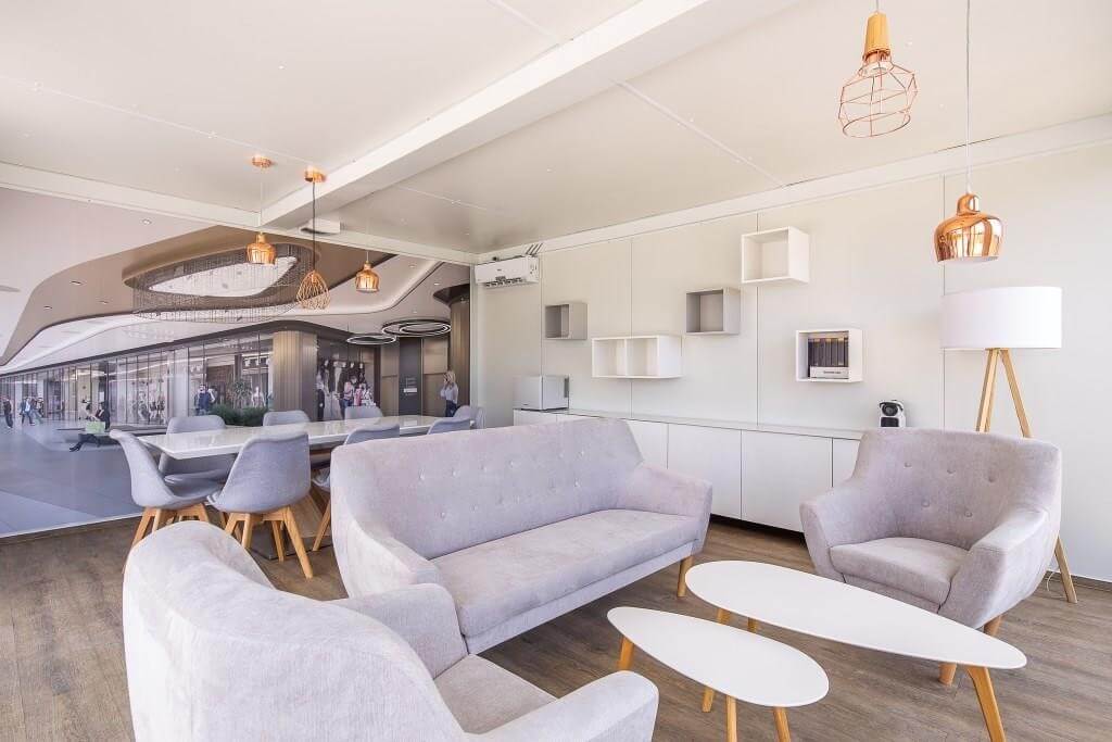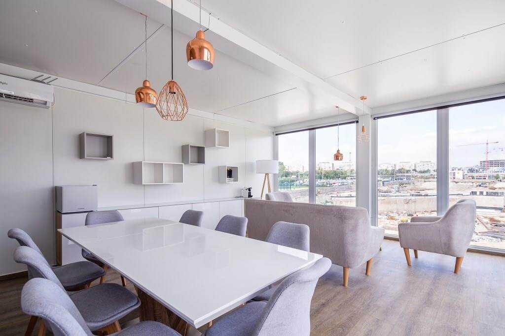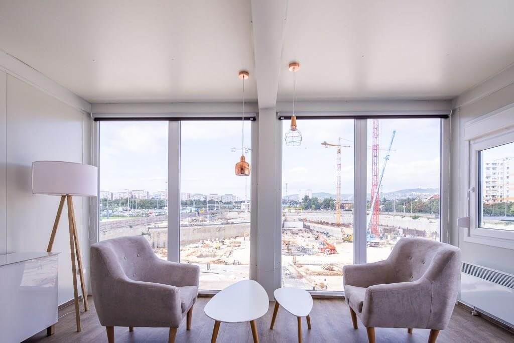 Két konténer ötvözésével letisztult formavilágú irodát alakított ki az Etele Plaza építkezésénél a Futureal-csoport. Az akár 10 személy számára is kényelmes, 30 négyzetméteres tárgyaló 15 négyzetméteres terasszal rendelkezik, mely kilátóként is funkcionál. Ráadásul az iroda bevásárlóközpontra néző acélfalát is teljes egészében üvegfelülettel váltották fel, így a jövőbeni partnerek és bérlők szabadon figyelhetik a 137 ezer négyzetméteres, Buda legnagyobbjának számító bevásárlóközpont építését.