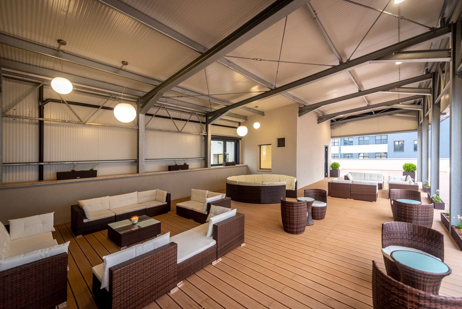 A leglátványosabb átalakuláson az udvar ment át: az aszfaltburkolatot térkővel váltották, emellett parkosítás is történt. A felújításoknak néhány eleme még zajlik, többek közt az A épületben egy étterem jön létre.