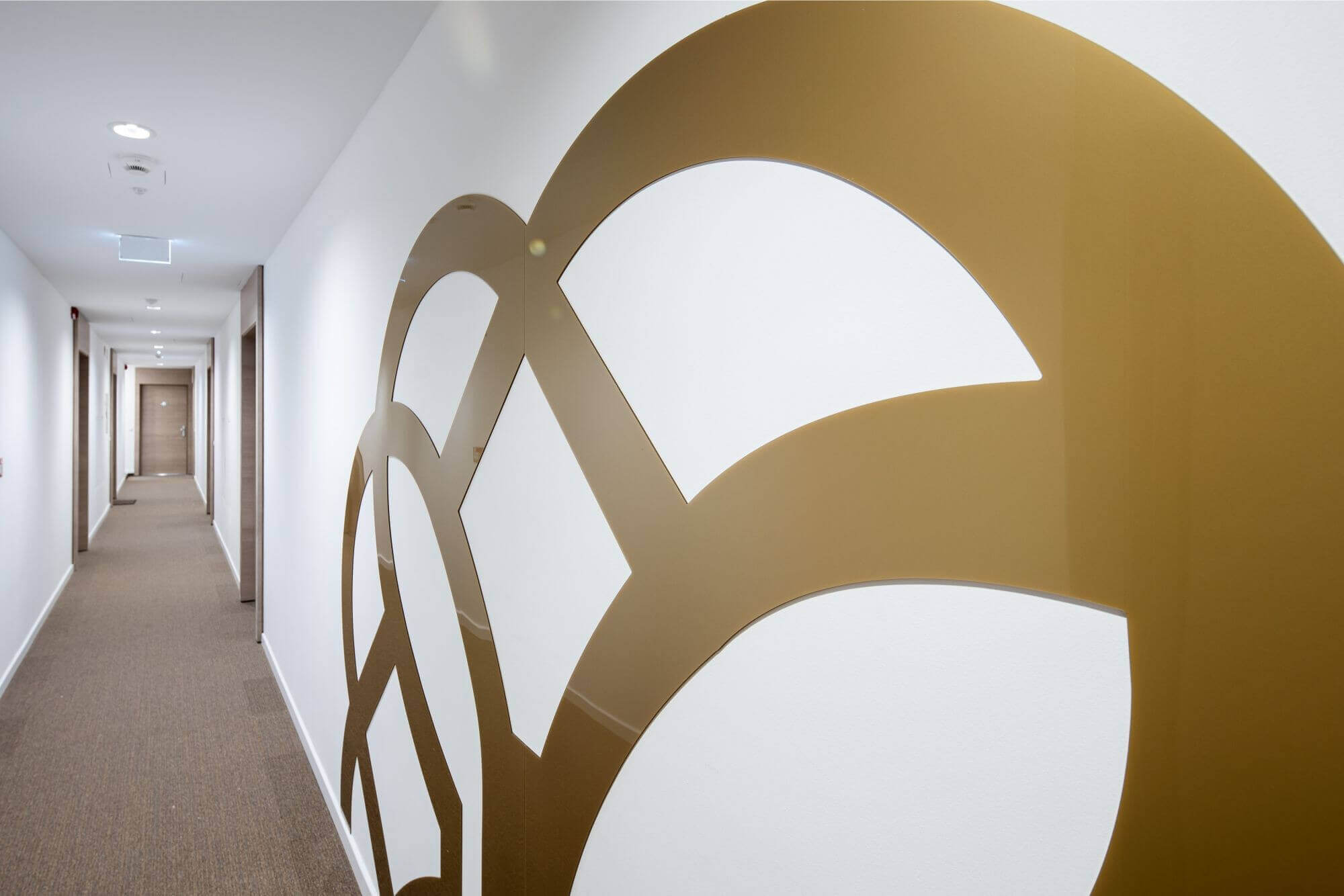 A nyolc emeletes épületet mennyezethűtéssel és – fűtéssel is felszerelték.