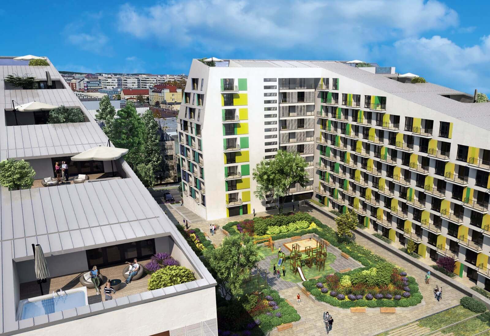 A fejlesztés első ütemében 268 lakás épül fel, melynek kivitelezése 2017 első felében indult el, és mostanra a lakások több mint 85%-a már elkelt. A teljes beruházás során összesen 706 új építésű lakás valósul meg három ütemben. Az épületben az alábbi lakástípusok kapnak helyet: