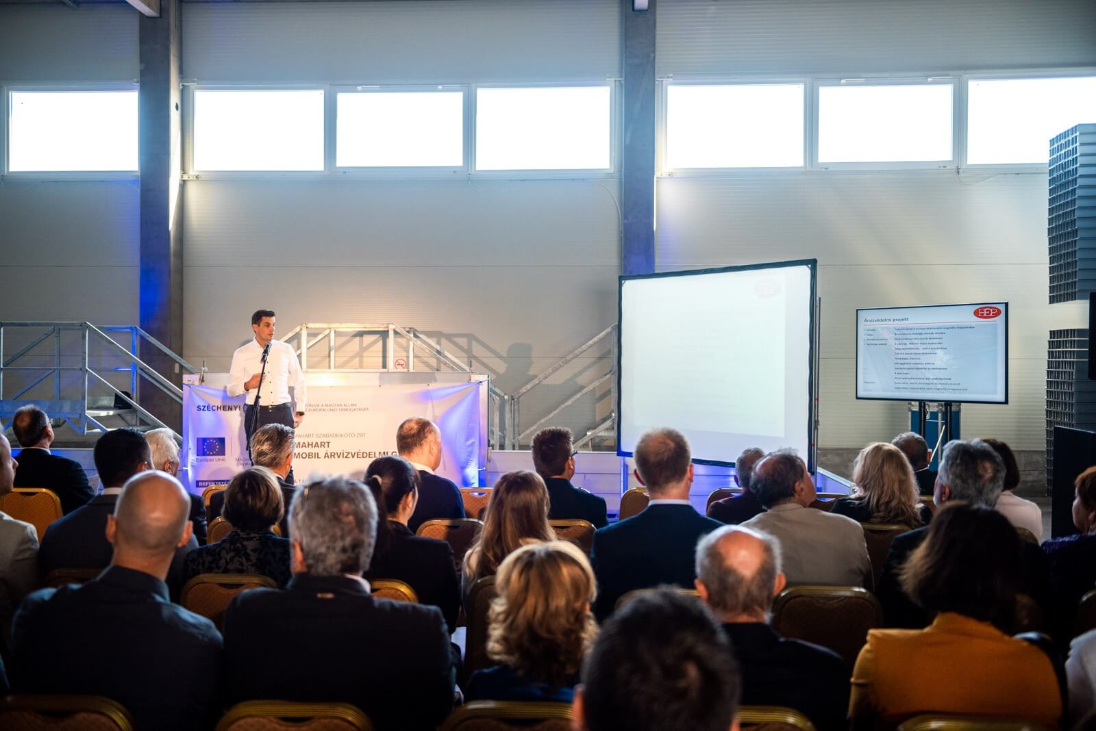 Az Integrált Közlekedési Operatív Program (IKOP) által támogatott projektben 1580 méter hosszan épült ki vagyonvédelmi célú mobil védvonal a kikötő legalacsonyabb szakaszán. A pénteki eseményen csak egy mintaszakaszt mutattak be a mobilgátból, melyet csak az árvíz esetén tesznek a helyére.