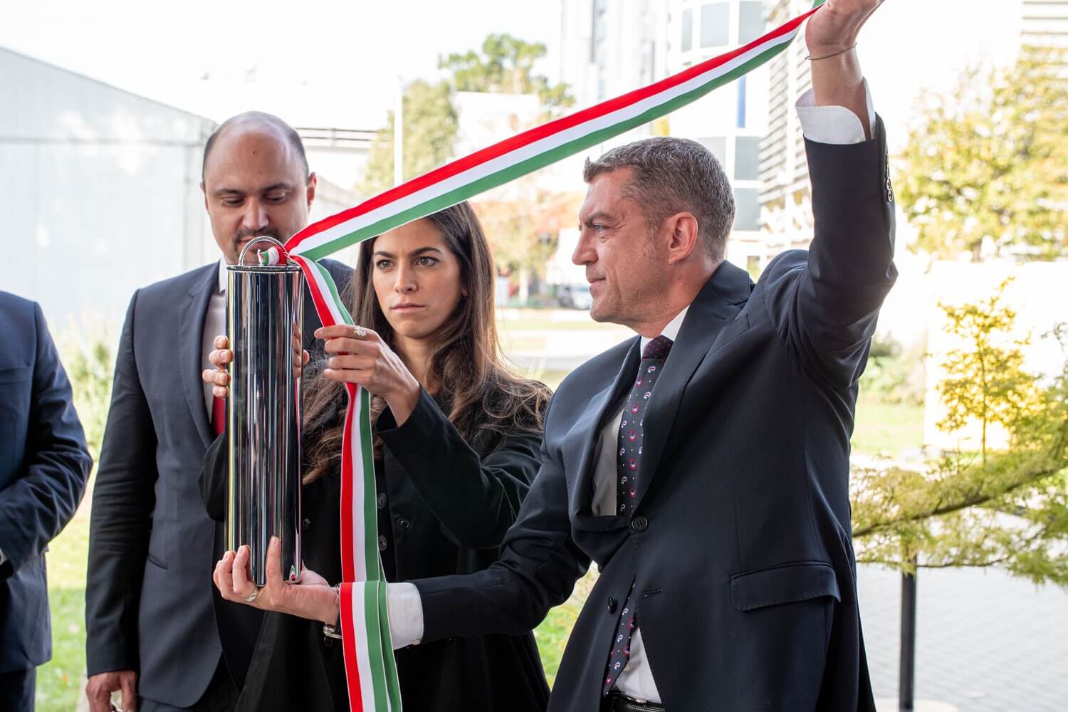 Hétfőn az alapkövet Szalay-Bobrovniczky Alexandra főpolgármester-helyettes, Ganczer Gábor, a Hungexpo vezérigazgatója, valamint Denhoffer Balázs az Expo Park Kft. ügyvezetője helyezte el.