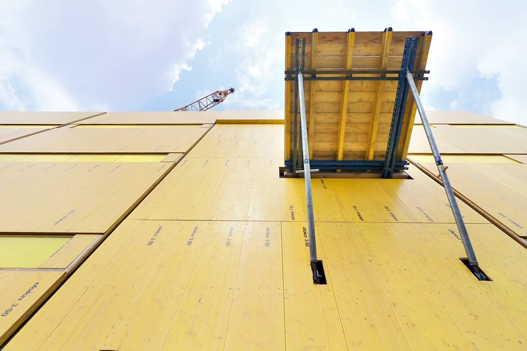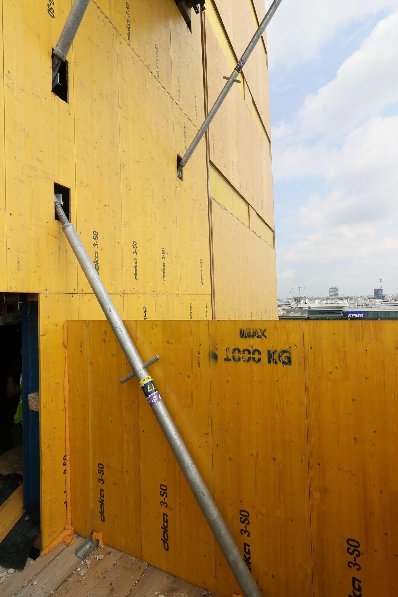 A bontási projekt esetében a legnagyobb kihívást a leeső törmelék felfogása, a por, illetve a zaj jelentette. A kivitelezőkkel történt egyeztetés végén a választás a 3SO zsaluhéj, valamint az Xbright bevilágító elemek kombinációjára esett. Az Xclimb 60 profilok 60kN maximális teherbírása optimalizálta az egységek számát, az új hidraulikus rendszer, és a vadonatúj kétirányú munkahengerek pedig biztosították a több tonnányi zsalu biztonságos mozgatását.