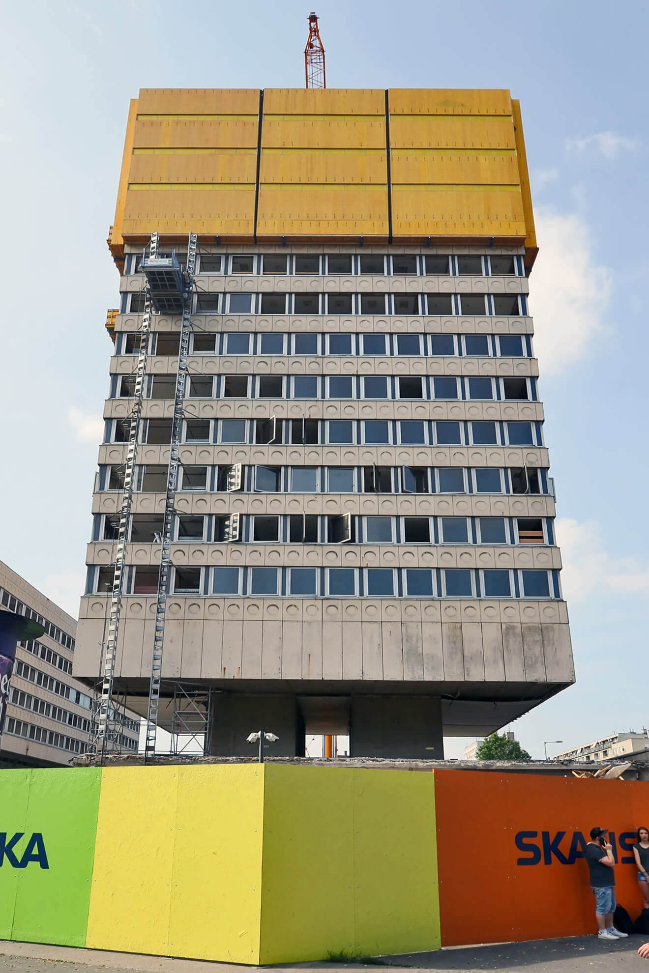 A bontás szempontjából a több mint 61 méter magas toronyház jelentette a legnagyobb kihívást. Ez 15 emeletet, valamint 490 négyzetméternyi irodaterület jelent emeletenként.