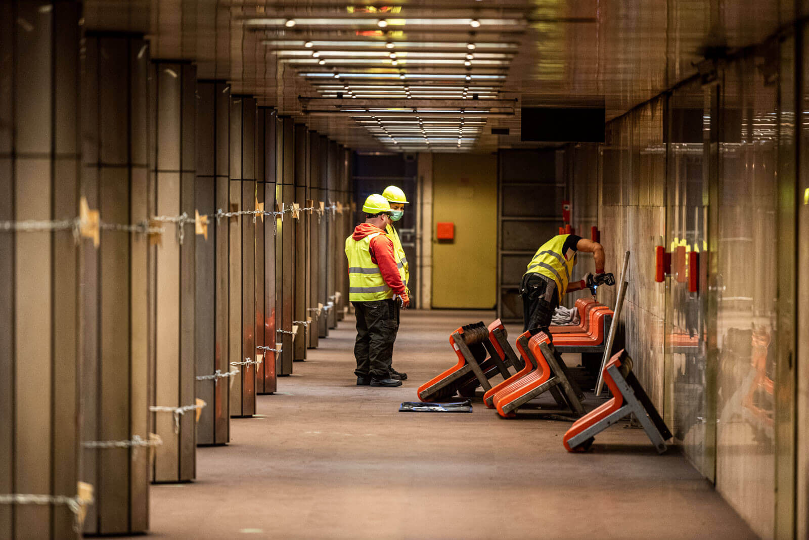 A bontási munkák menetrend szerinti metróforgalom mellett zajlanak és a szerelvények megállás nélkül haladnak át az állomáson. Így ahhoz, hogy a SWIETELSKY mérnökei és munkásai folyamatosan tudjanak dolgozni, az állomásokon a vágányzónát és a peront elválasztó kerítést építettek fel, melyek biztonsági védőkerítésként működnek.