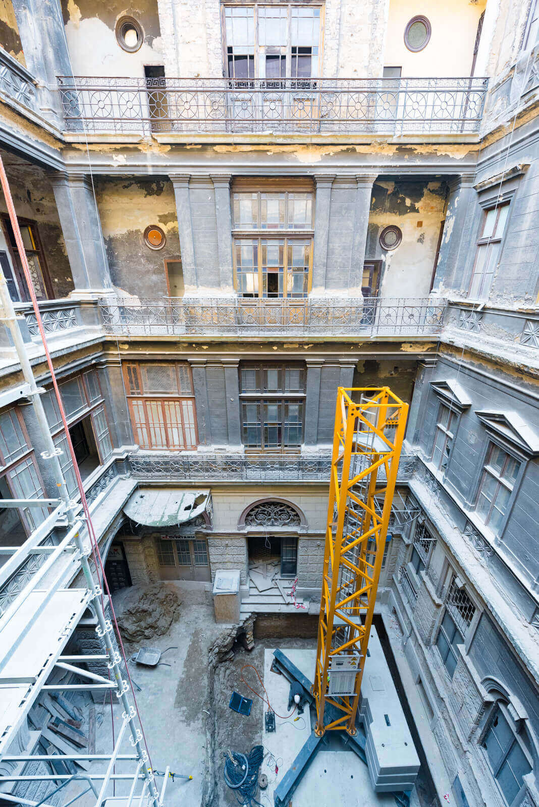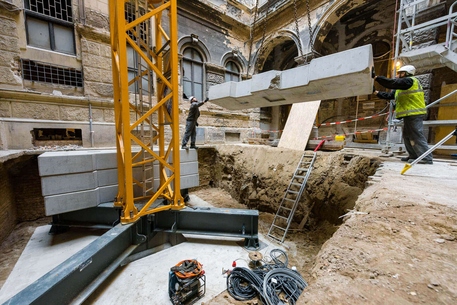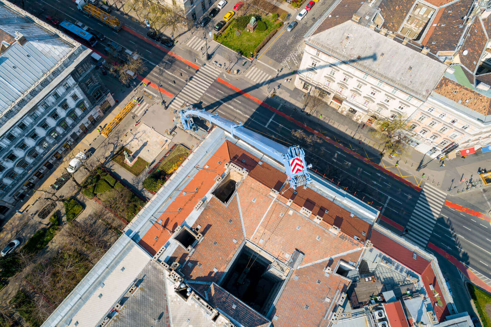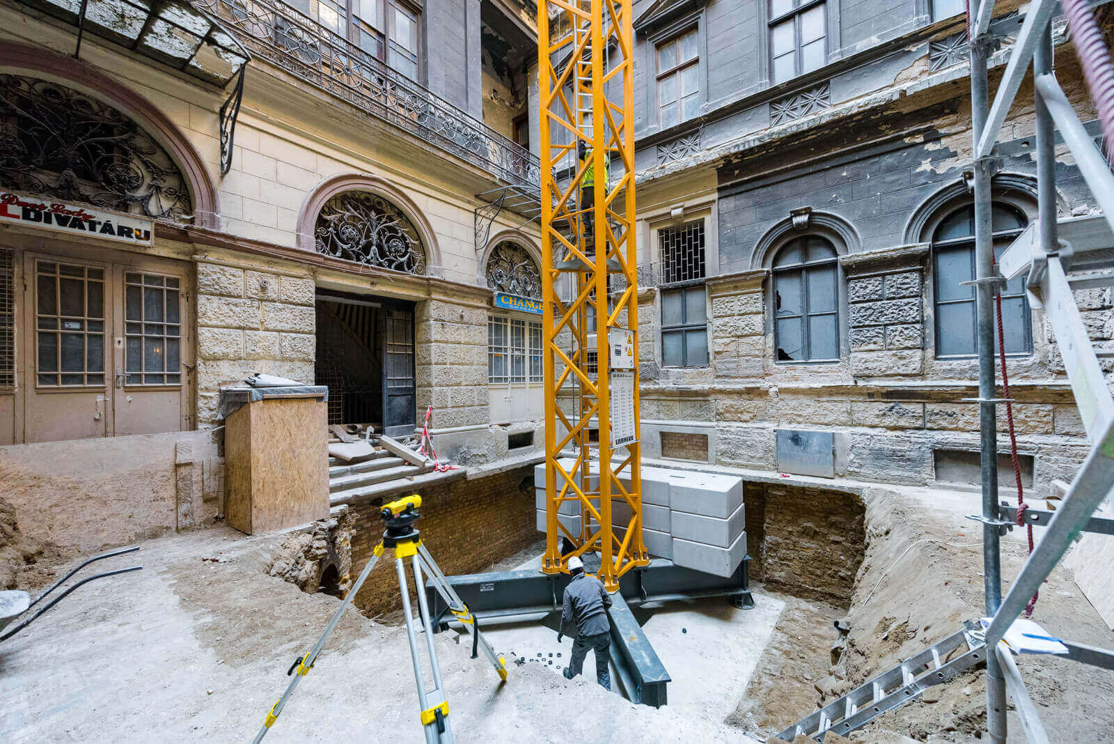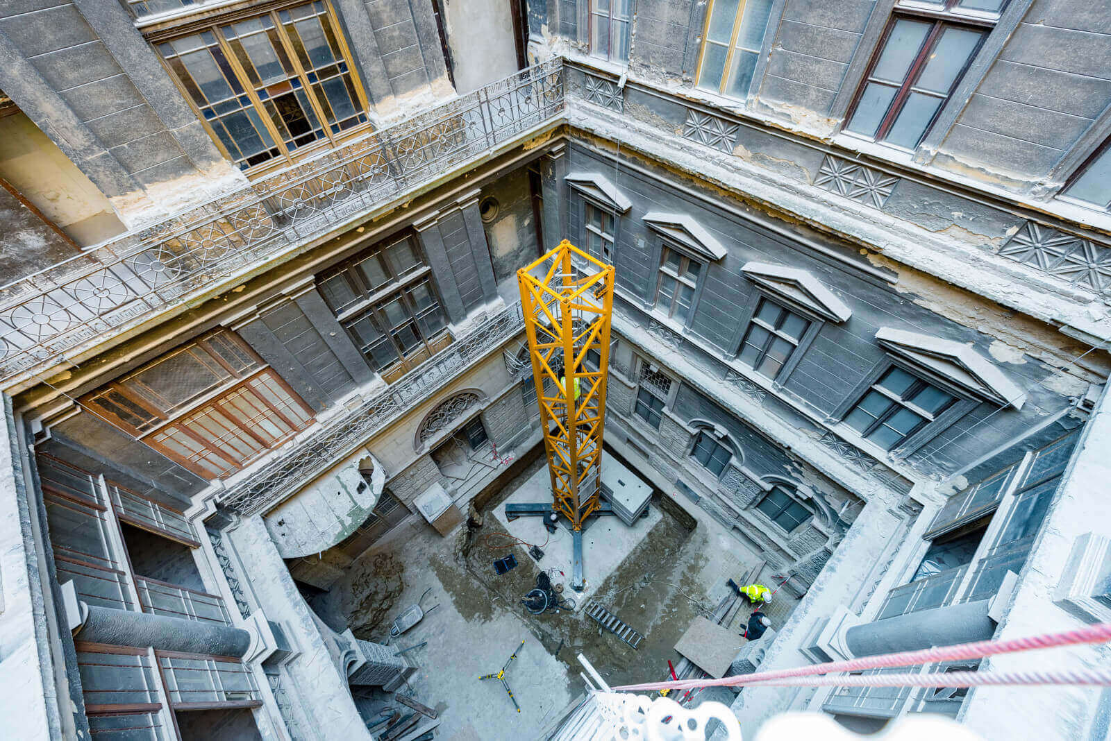 A Bayer Construct szakemberei az Oktogon melletti 142 éves műemléképület újjáépítésén dolgoznak, a mostani lépéshez több hónapos előkészítés és rendkívül koncentrált, összehangolt munka kellett.