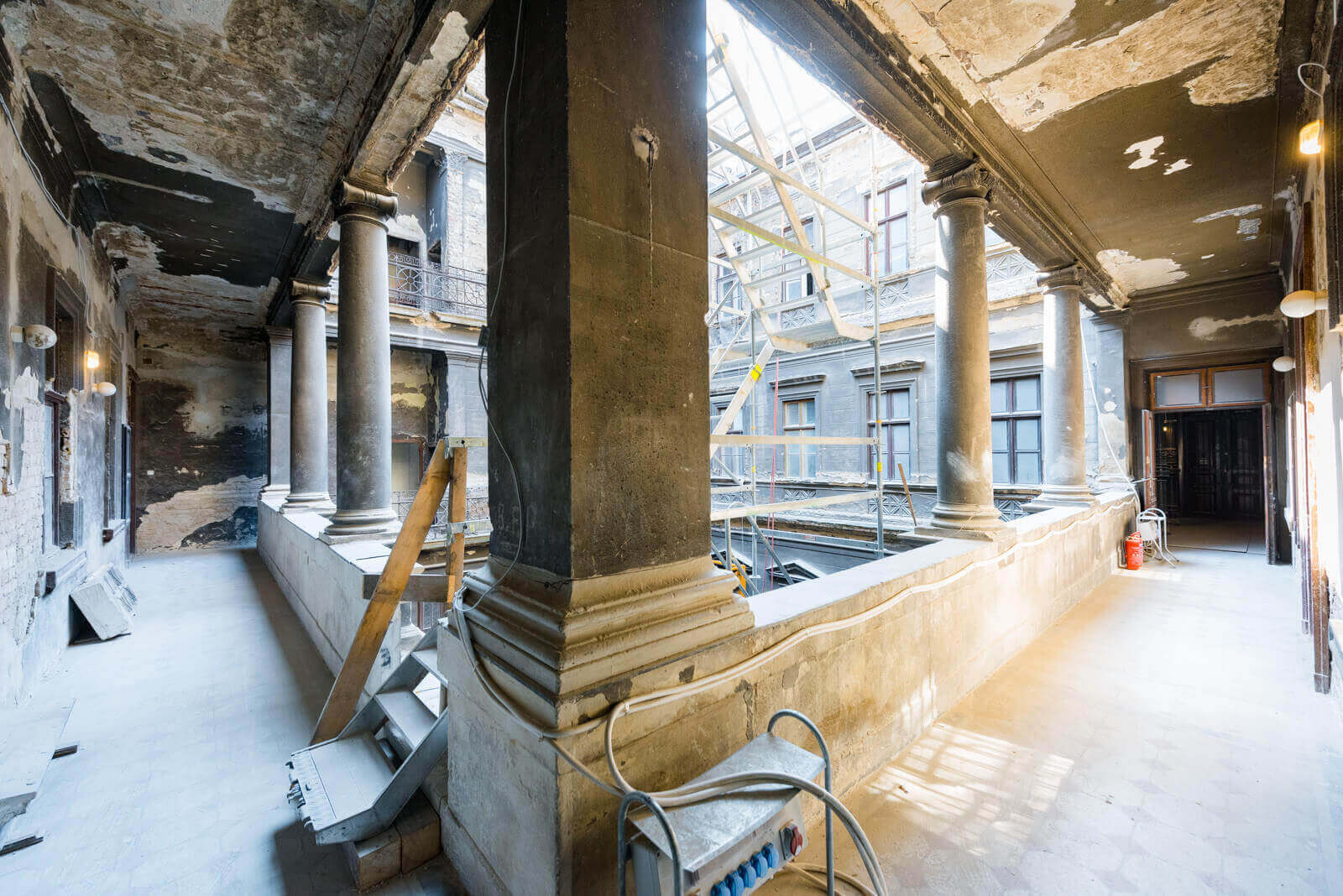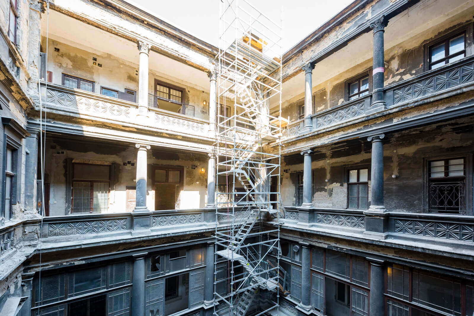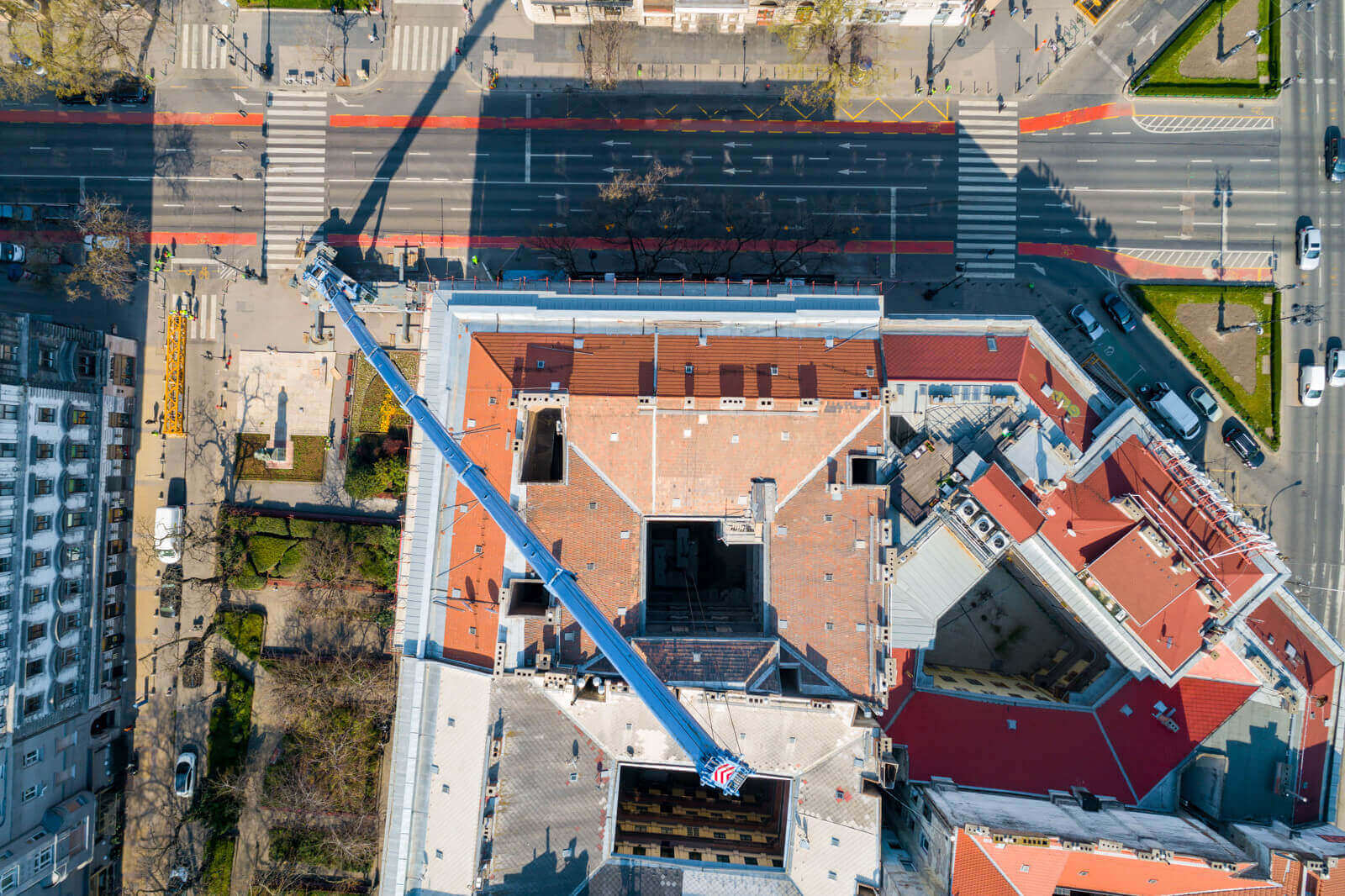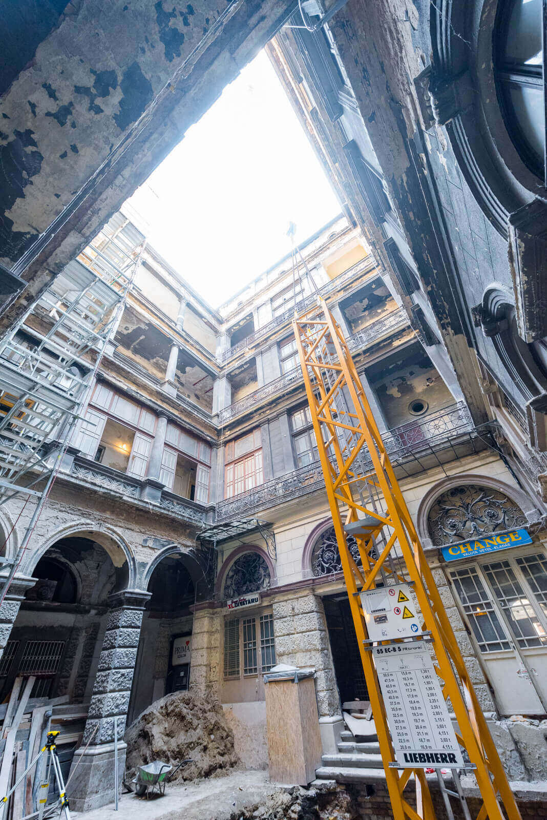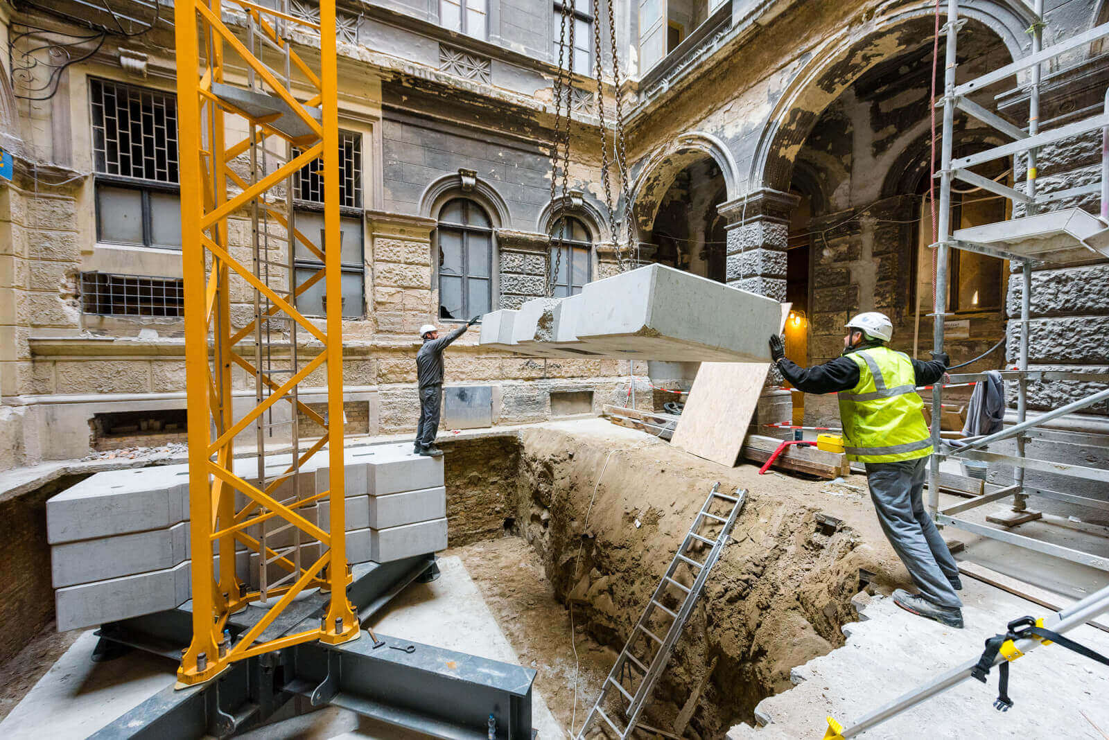 A Bayer Construct szakemberei az Oktogon melletti 142 éves műemléképület újjáépítésén dolgoznak, a mostani lépéshez több hónapos előkészítés és rendkívül koncentrált, összehangolt munka kellett.