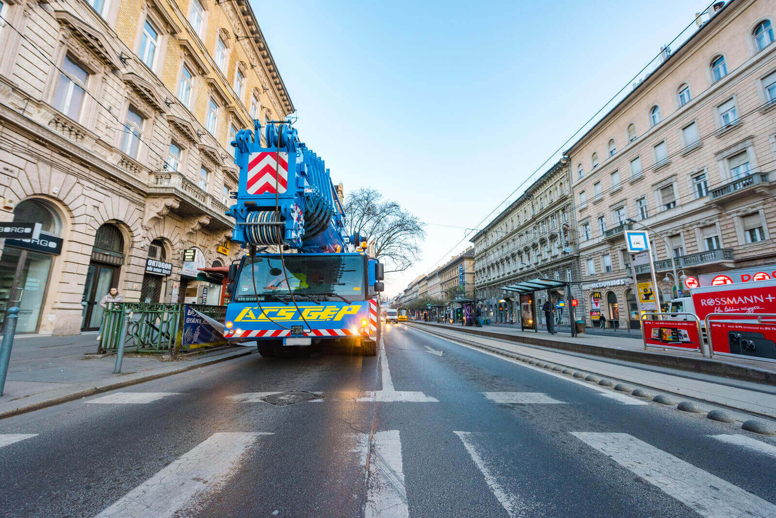 Mindezek mellett fontos volt, hogy az autódarut 5 km/órás sebességgel szállítsák be, a metró födémet legkevésbé érintve, nehogy a rezgésekkel kárt tegyen.