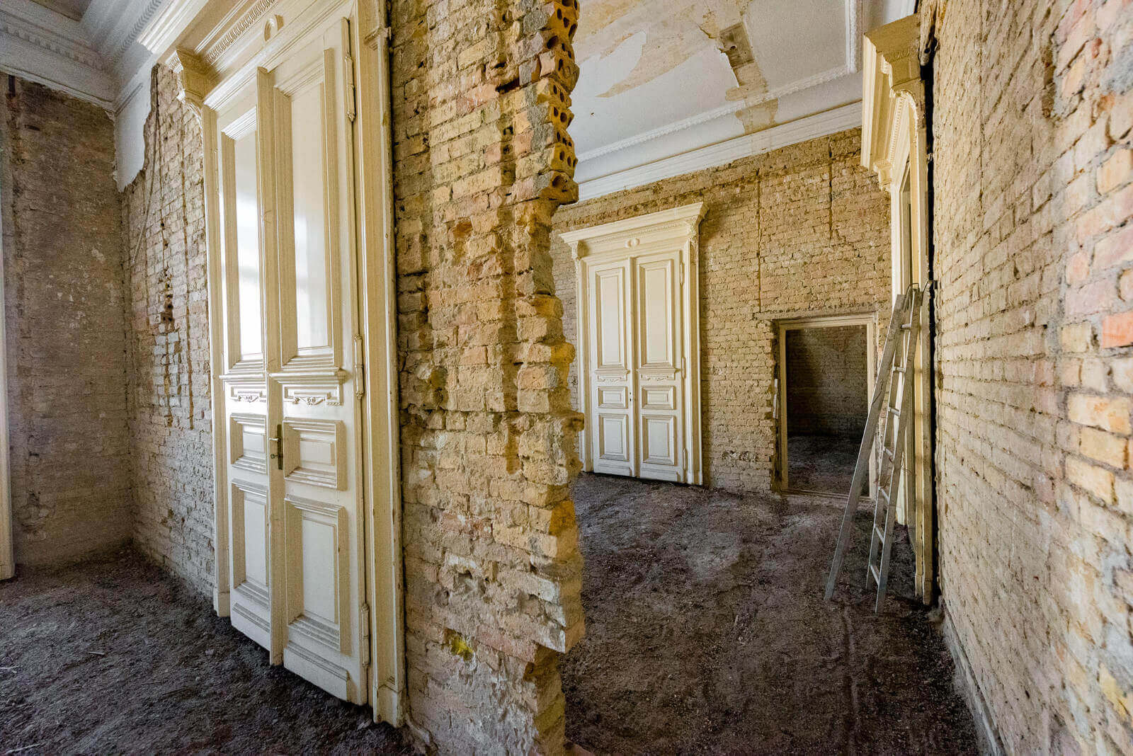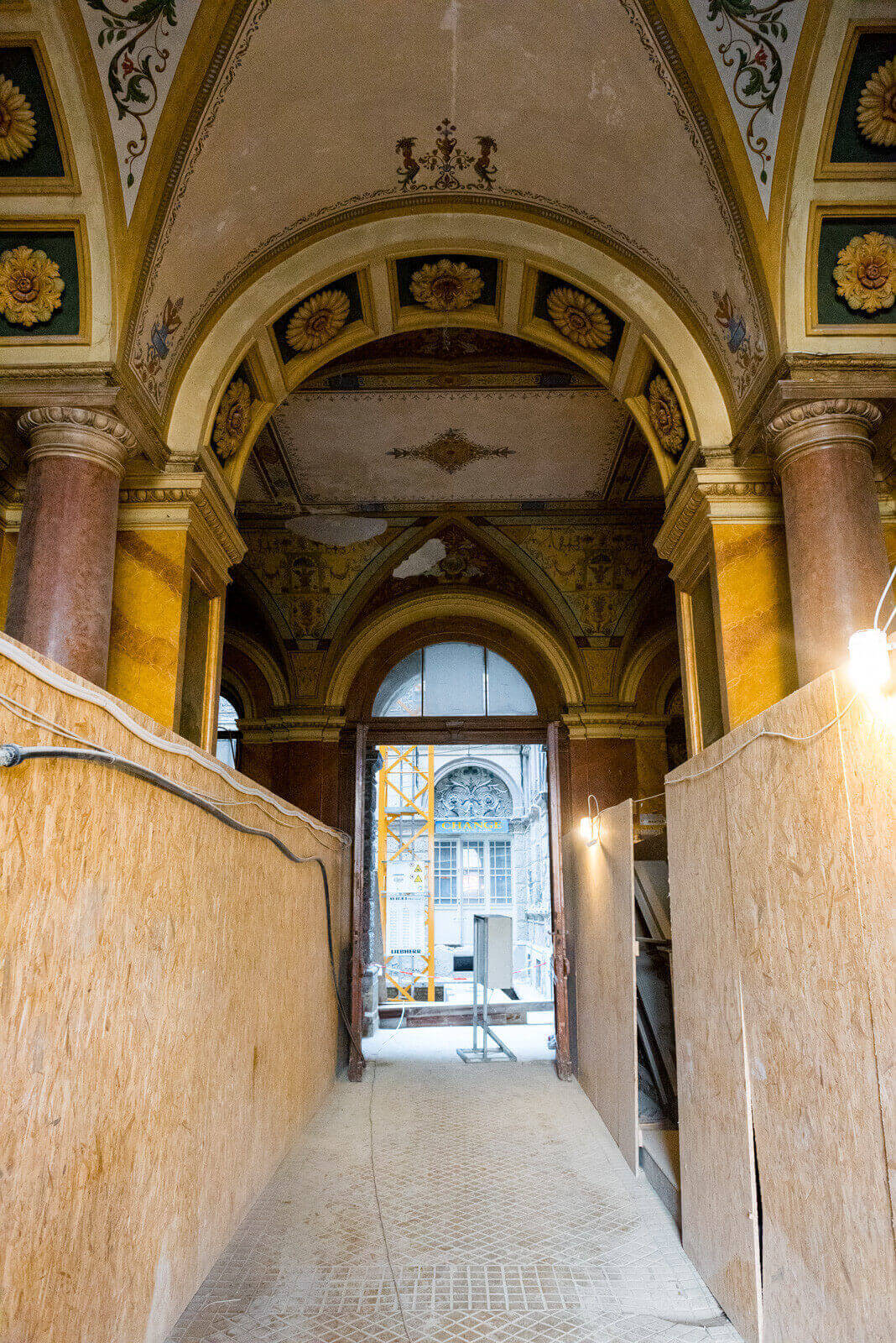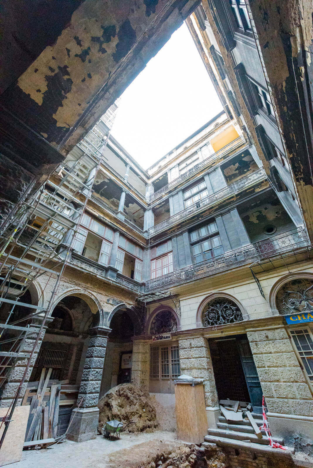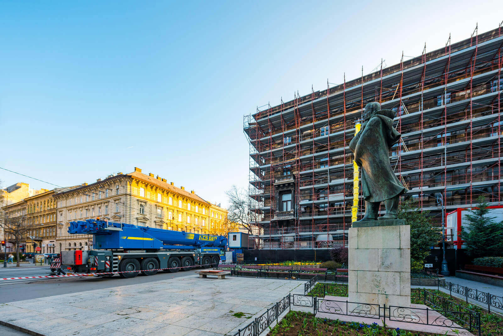 Látványos munkákkal folytatódott szombaton Budapesten az Andrássy út 47. szám alatti műemléképület felújítása, amit a Bayer Construct Zrt. kivitelez. Ahogy azt korábbi cikkünkben részletesen bemutattuk, a 19. században épült eklektikus ház a világörökség része, mégis hosszú évek óta romos állapotban van. A magyar tulajdonú cégcsoport most saját beruházásban teszi rendbe, és hoz létre benne prémium kategóriás lakásokat.