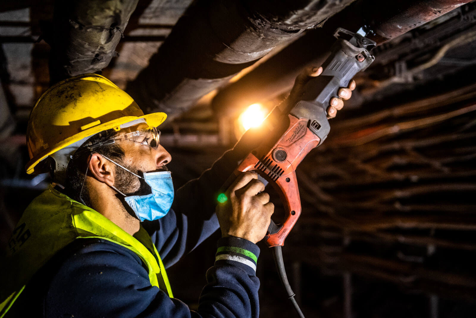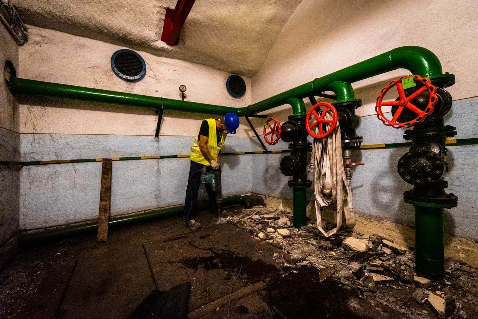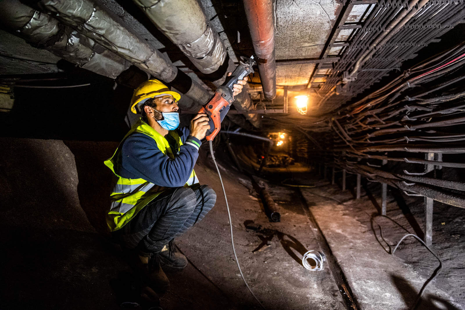 Az elektromos munkákban az Arany János utcában haladnak gyorsabban: itt már kiépítették az ideiglenes hálózatot és a fennmaradó rendszerek védelmét, emellett pedig kisebb bontási feladatok előkészülete is lezajlott. A kábelazonosítási munkák során (erről a folyamatról itt olvashatják cikkünket) jelenleg a csomópontok beazonosításánál járnak. Az utasforgalmi terekben hétvégente a burkolatok óvatos bontása zajlik (a pormentesség érdekében), az üzemi terekben pedig gépészeti rendszerek bontásán dolgoznak.