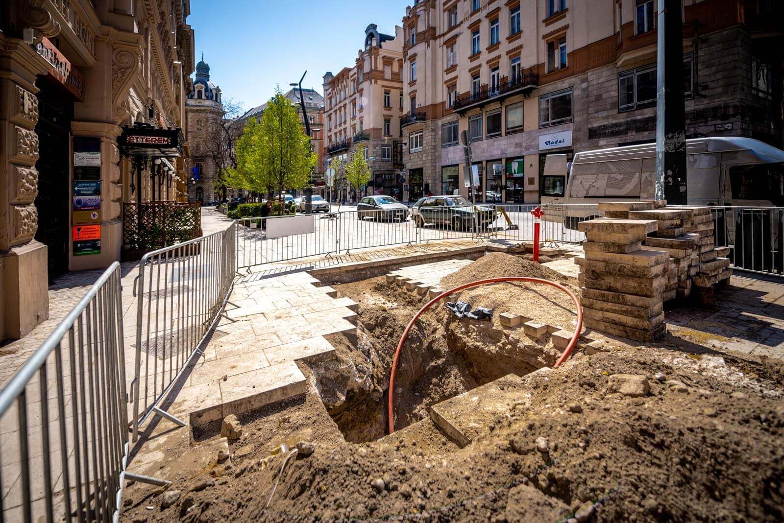 A SWIETELSKY Kft. a Ferenciek terén és az Arany János utcában is folyamatosan dolgozik a megállók rekonstrukcióján.
