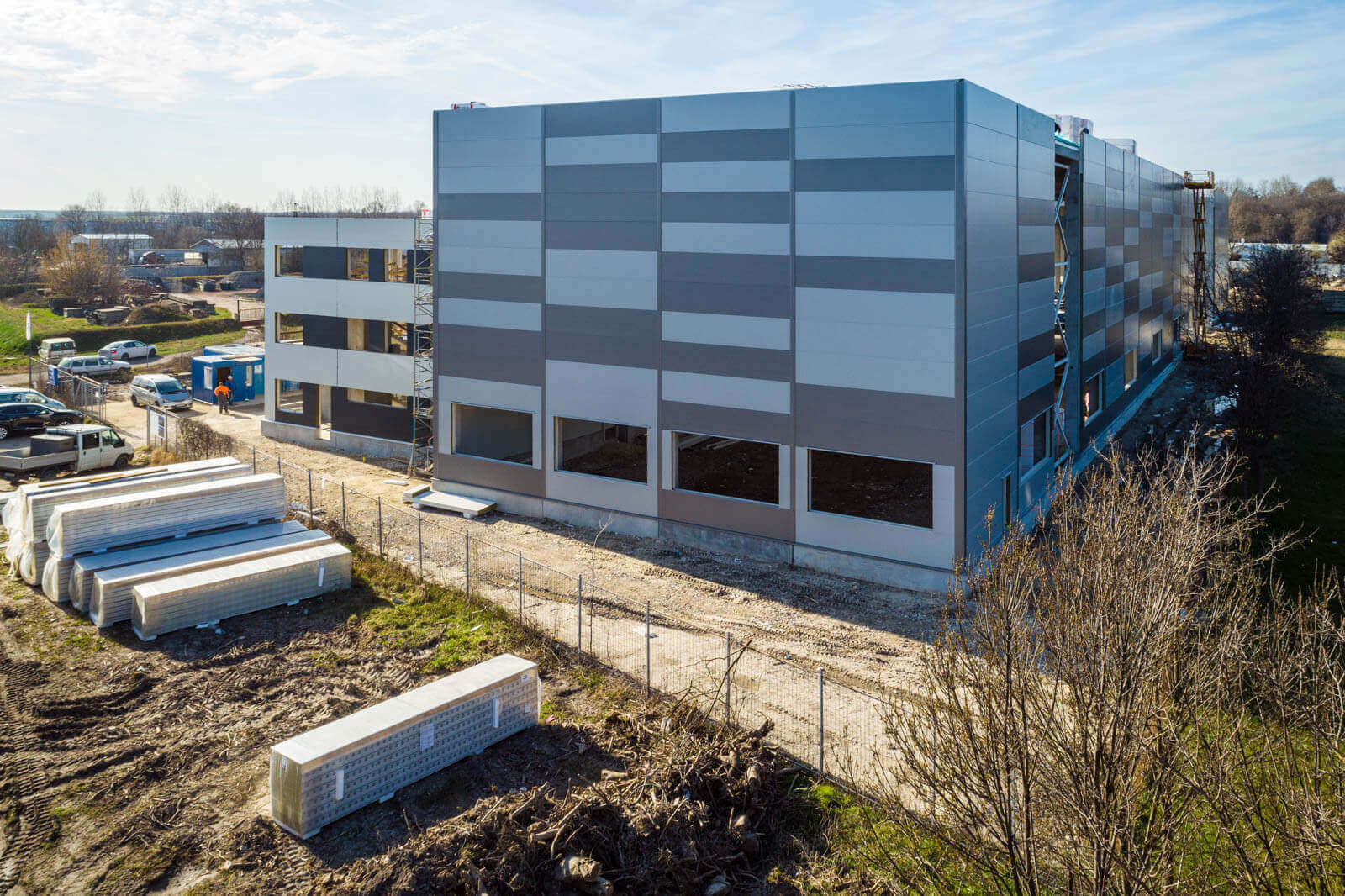 Az üzemi csarnokhoz szervesen kapcsolódik majd egy háromszintes irodaépület, amelyben 390 m2-en az irodahelyiségek és a szociális kiszolgálóhelyiségek kapnak helyet.