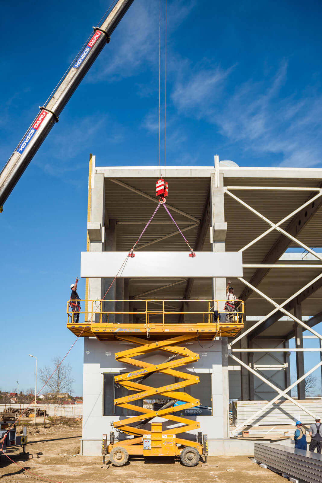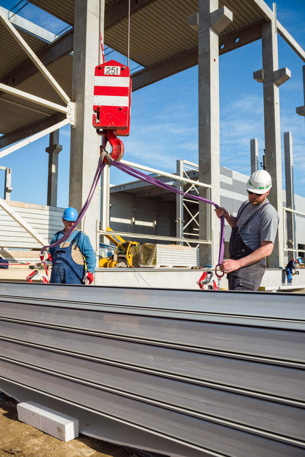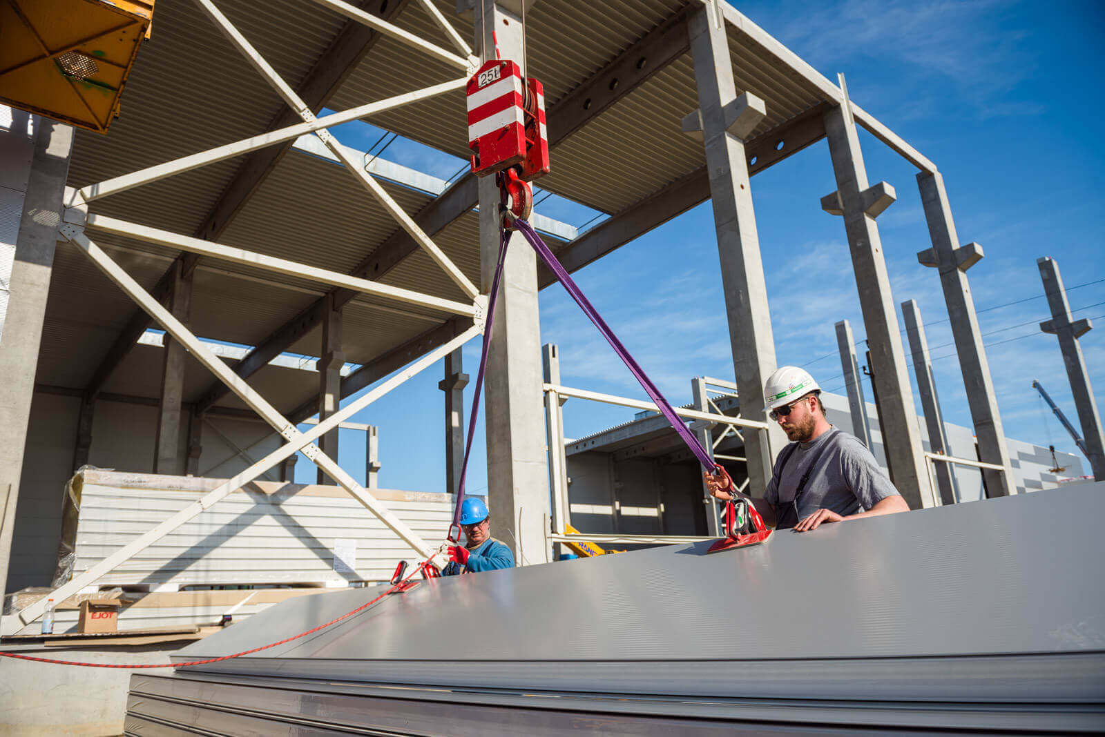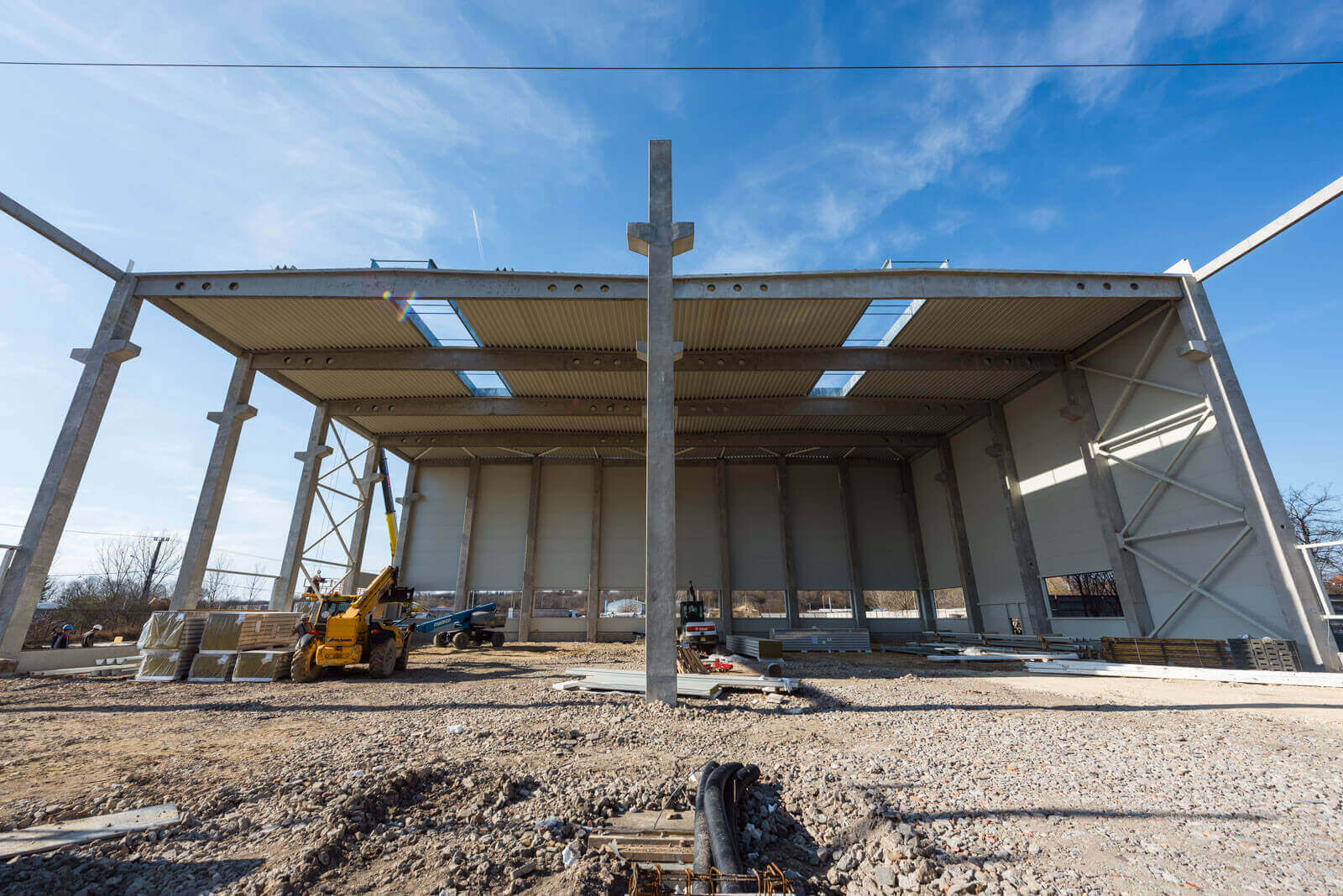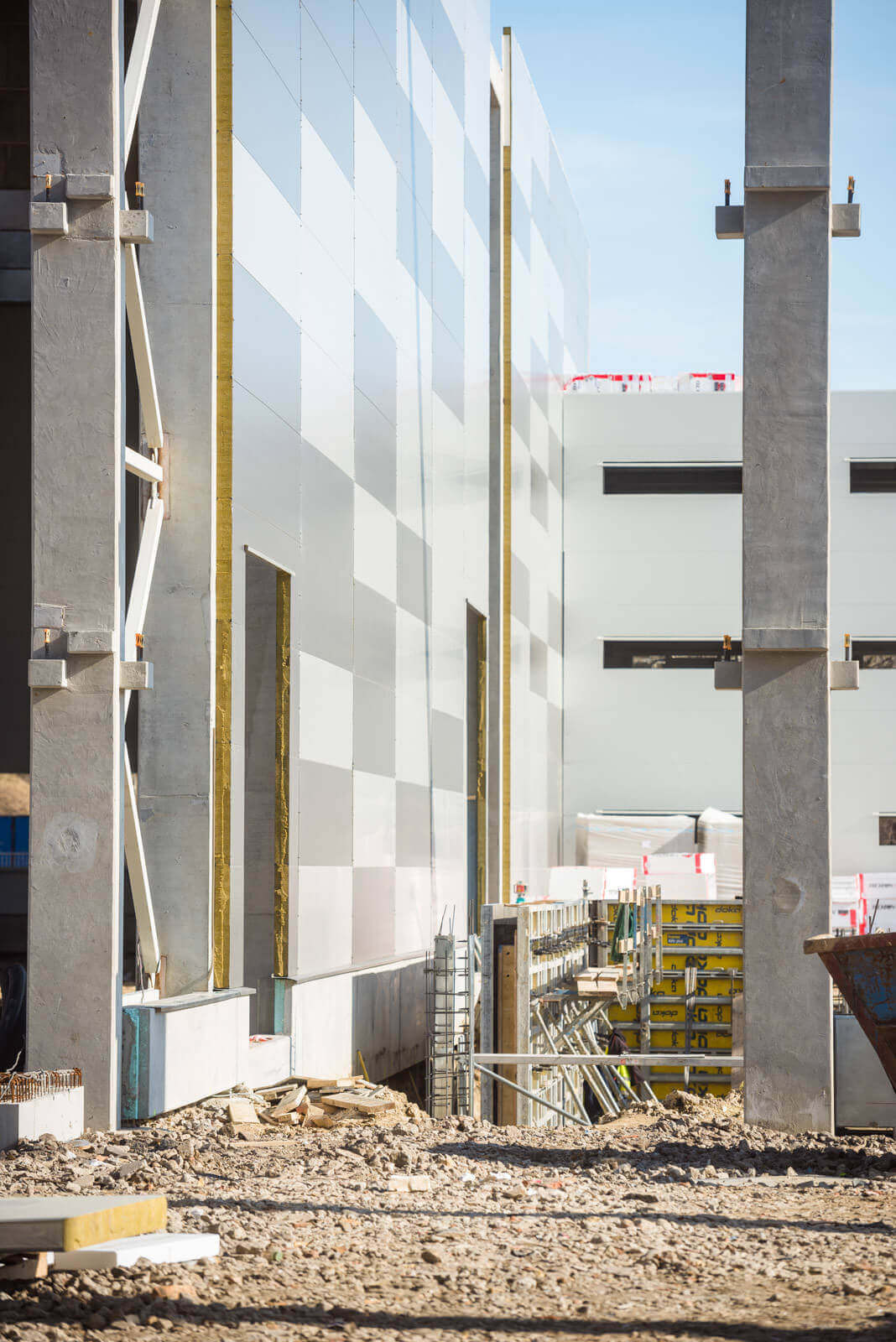 Az épület homlokzati zárását követően a belső szakipari munkák, a technológiai berendezések alapozásai és a csarnok ipari padlójának elkészítése kezdődik meg.