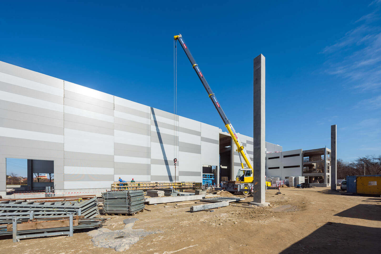Jelenleg az elkészült előregyártott vasbeton váz homlokzati és tetőhéjalási munkálatai zajlanak, a szabadtéri technológiai műtárgyak (kültéri híddaru, betonüzem, cementsilók) alapozási munkáival együtt.