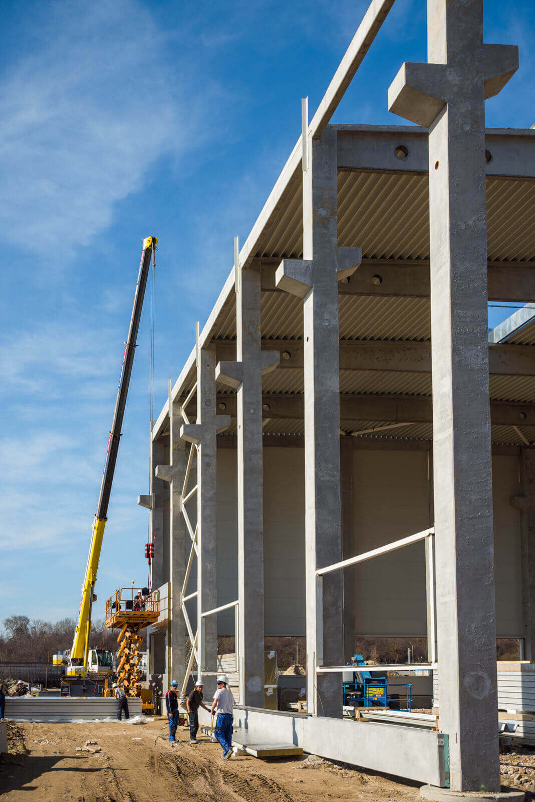 A gyártócsarnok mellett hozzák létre a betonüzemet a hozzá tartozó alapanyag-depóniákkal, közvetlen kapcsolattal a gyártócsarnokkal a nyersbeton-feldolgozás optimalizálása érdekében. A telephelyen kialakítanak továbbá egy 1500 m2-es daruzott tároló- és rakodóteret a készáruk deponálására és logisztikai kezelésére.
