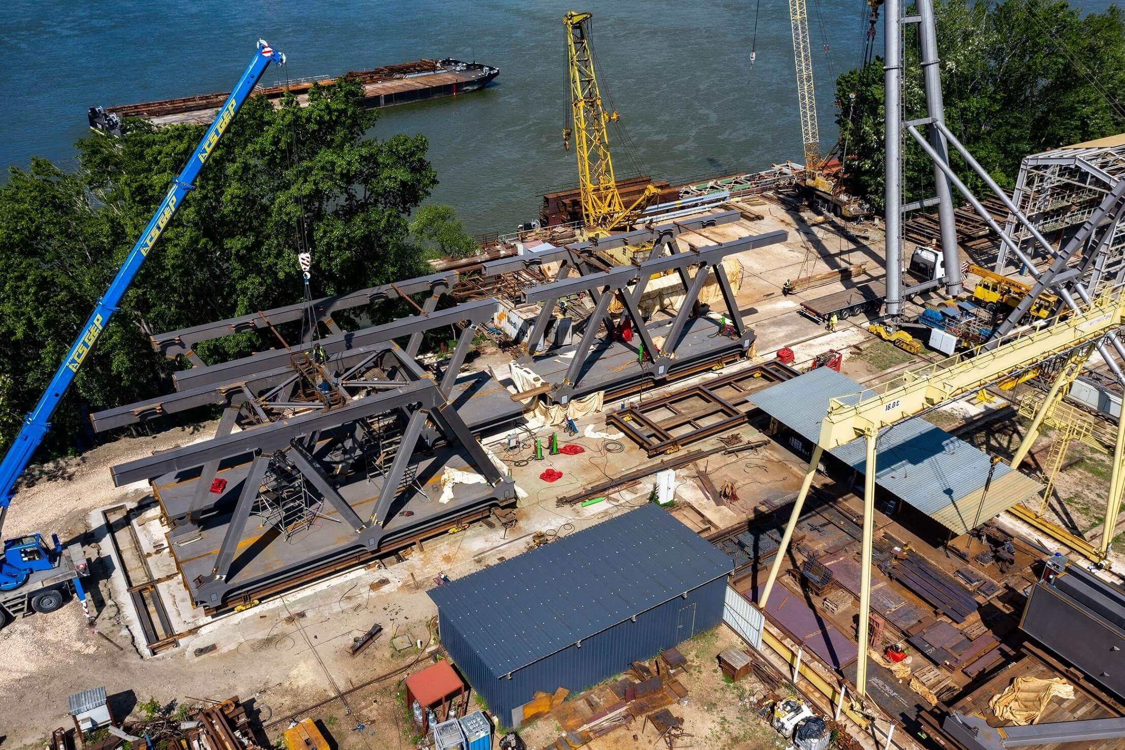 A szerelési egységek később bárkára kerülnek, ahol hozzávetőlegesen 80 méter hosszúságú úsztatási egységgé állítják össze őket. Ezt követően a hidat a helyszínre úsztatják, átemelik emelőbárkákra, majd várhatóan 2020. III. és IV. negyedévben a helyére emelik.