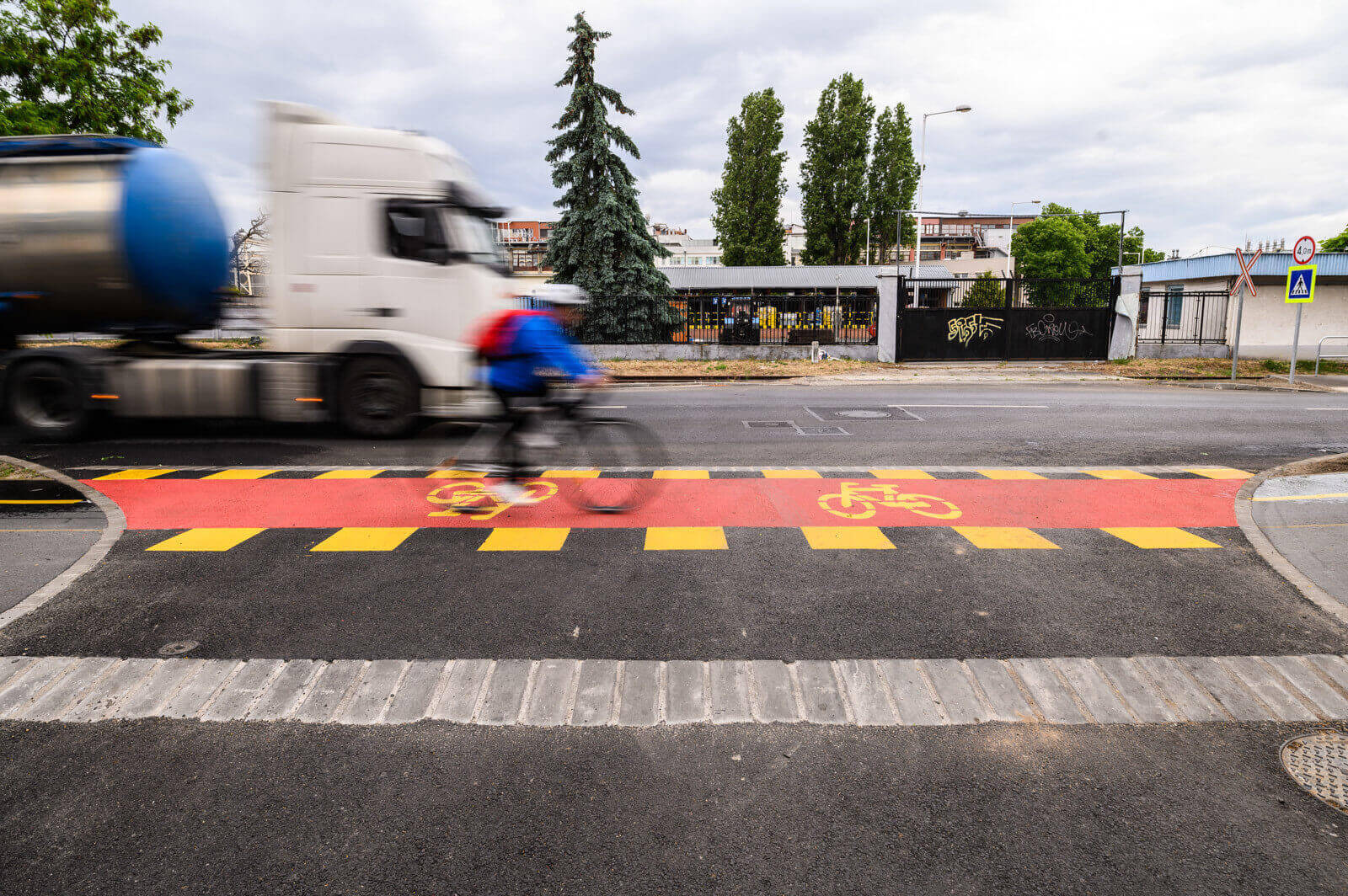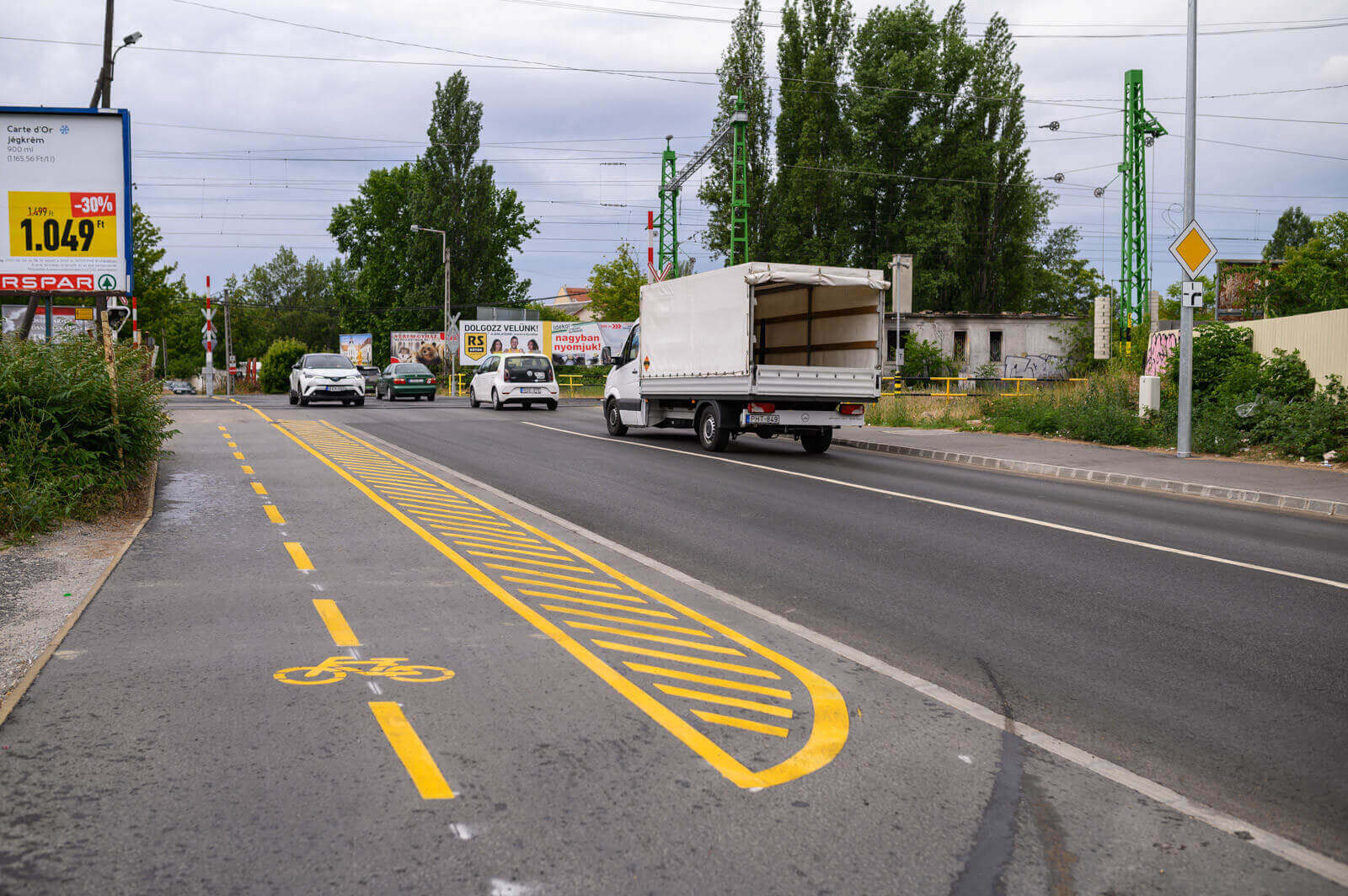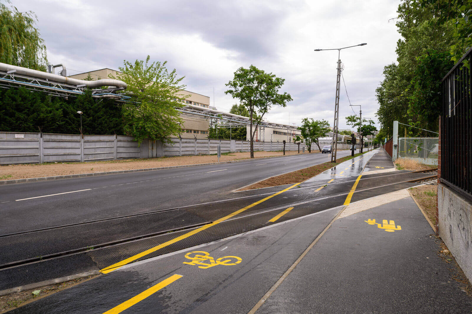 A beruházás a nagy forgalmat lebonyolító útpálya megújításán túl a kerékpárosok közlekedésének biztonságát is szolgálja, hiszen a két kerületet összekötő egyik fő közlekedési útvonalat szinte teljes hosszában elsőbbséggel védett szakaszon tehetik meg kétkeréken.