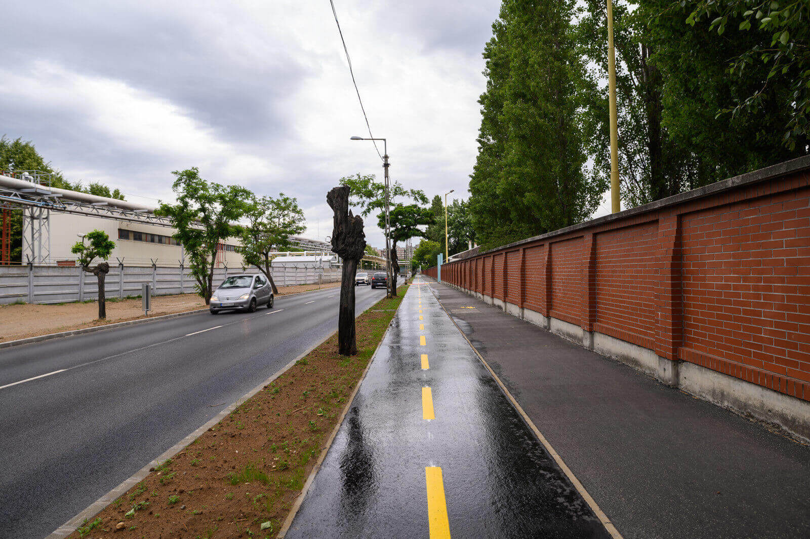 Szintén megújult a járda és kerékpárút a teljes szakaszon, mely 4600 négyzetméter öntött aszfalt burkolat elkészítését jelentette új szegélyek és betonalap építésével.