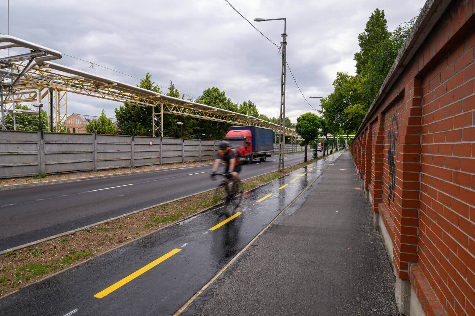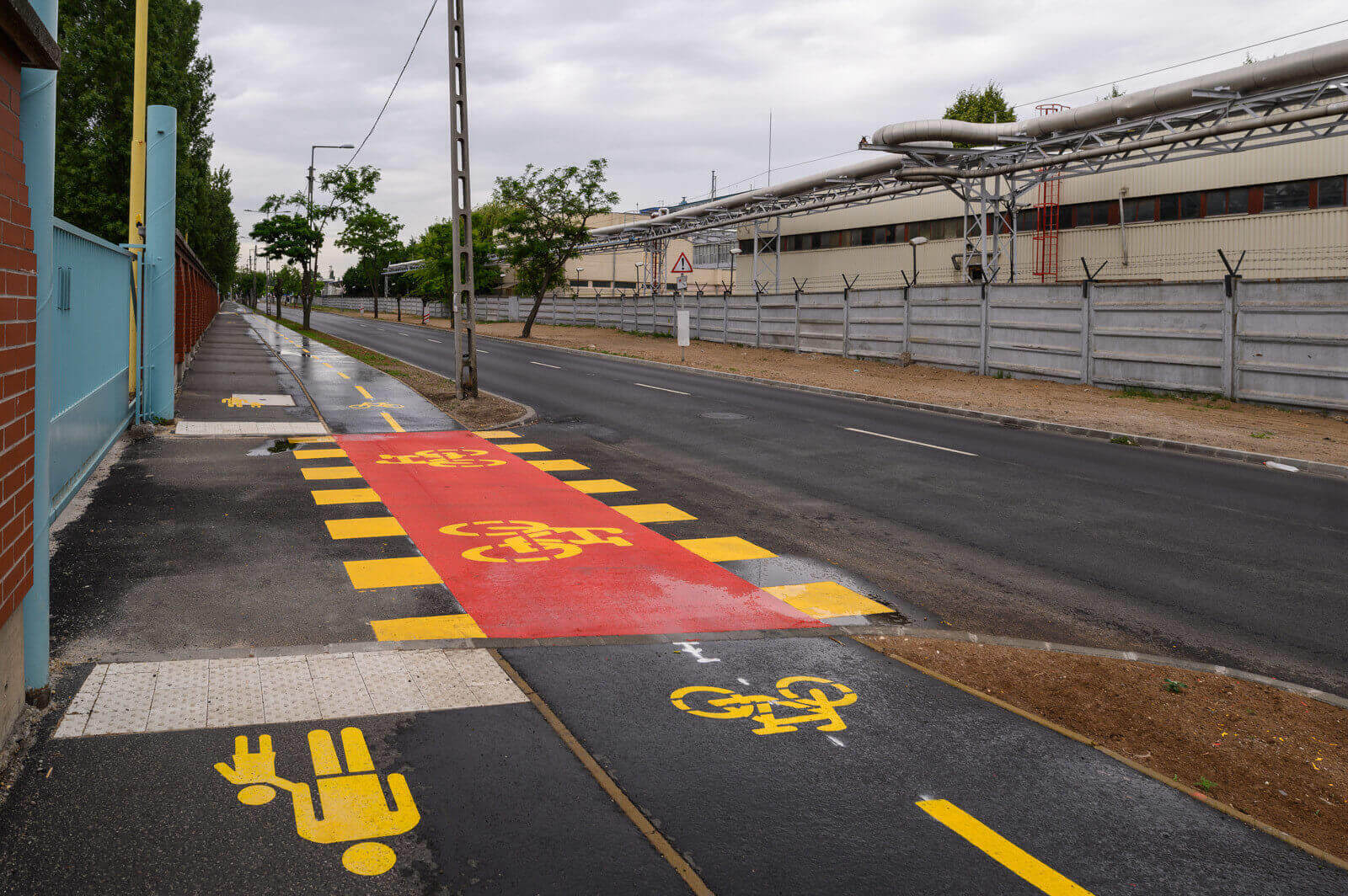 A Penta Kft. kivitelezésében megvalósuló beruházás a kerékpárosok biztonságos közlekedését is szolgálja.