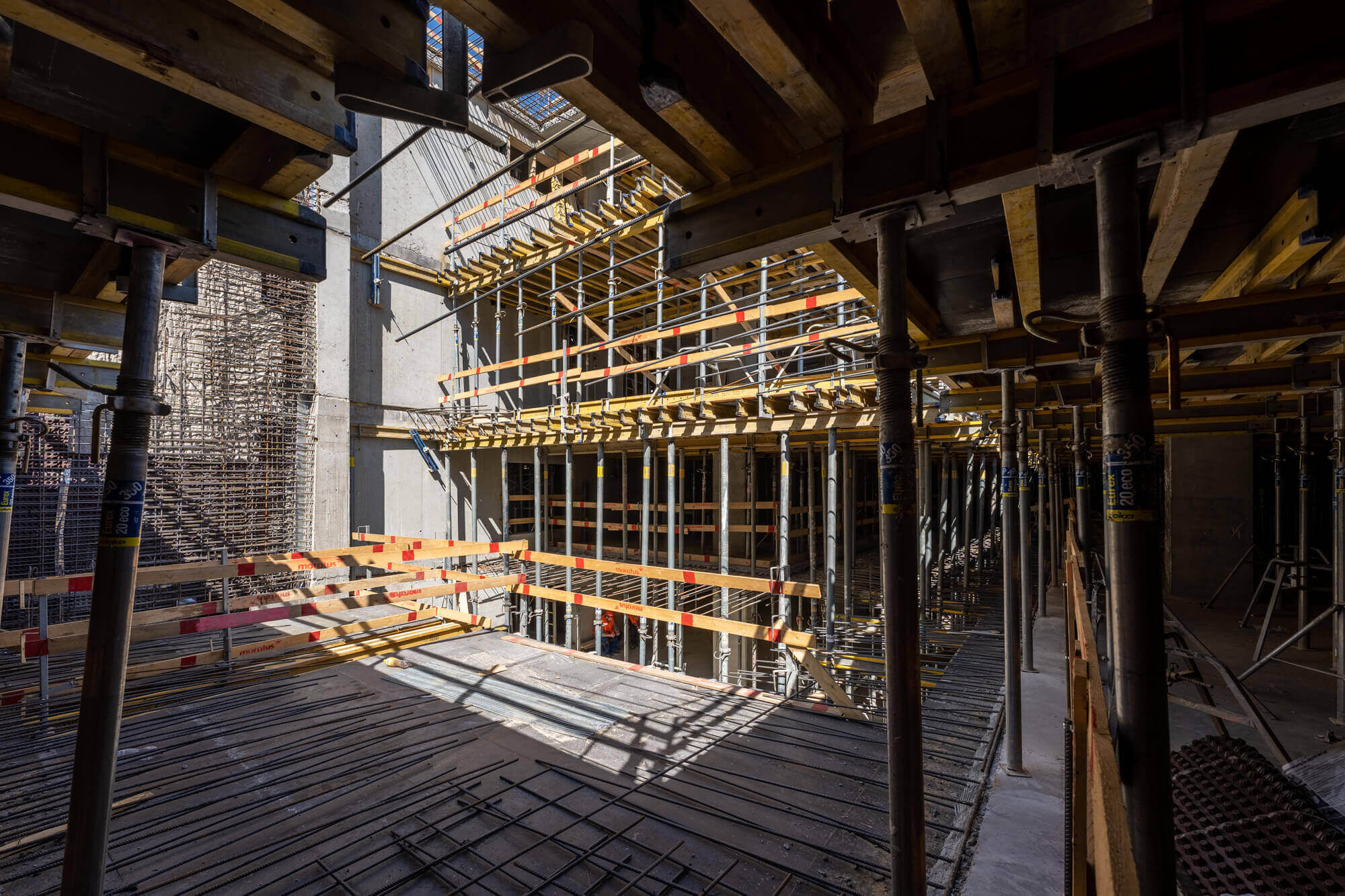 Áprilisban és májusban a pódium épületrészen elkészült a négy pinceszint közül a legalsó kettő teljes szerkezetépítése, míg a -2. szint felett is több ütemben zajlik a födémépítés.