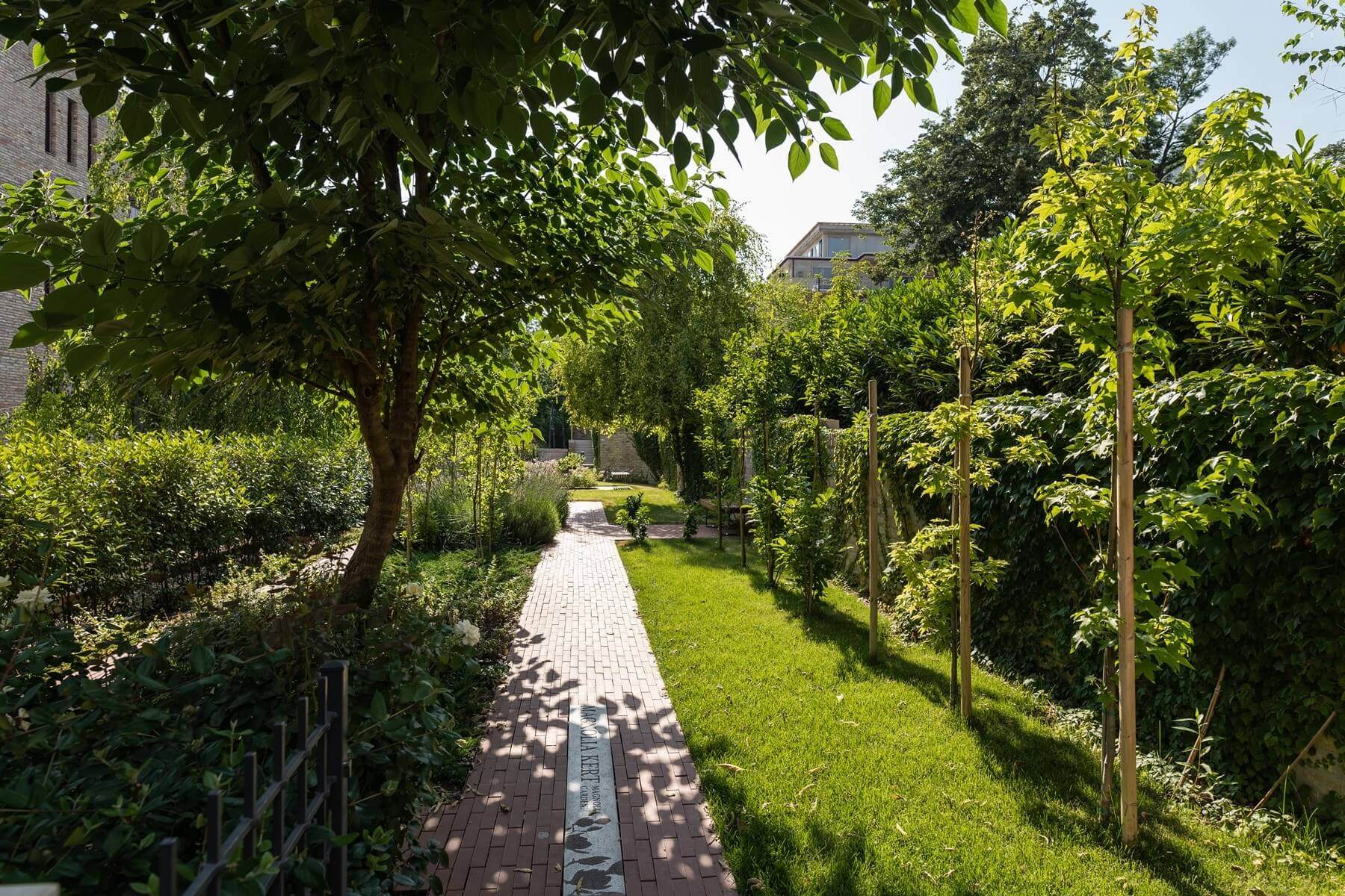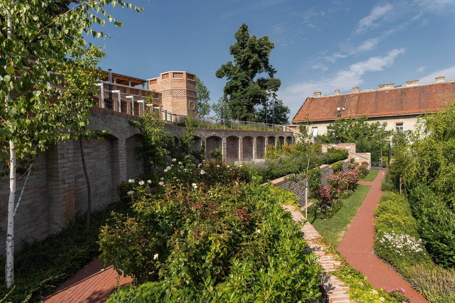 A türbe területéhez csatlakozva, Budapesten egyedülálló, mindenki számára látogatható zöld közpark, mediterrán függőkert épült, padokkal, díszkúttal, rejtett esti fényekkel. Csaknem 140 fa, 2300 cserje, több mint 400 rózsa – sötétrózsaszínű és krémrózsaszínű, 50 cm-es parkrózsák, magas törzsű rózsák, a támfalak előtt kúszórózsák – valamint 2700 évelő növény, továbbá 570 kúszónövény kapott itt helyet. A függőkert teraszain más és más élmények várják a látogatókat. Az örökzöldek kertjében tulipán, nárcisz, írisz, fritillaria, a rózsakertben rózsakülönlegességek, az illatkertben – rozmaring, zsálya, kakukkfű, oszlopos citrusok kényezteti a szemet és az orrot. A beruházás tájépítésze – többek között a Gül Baba Türbe komplex táj- és környezetrendezési tervéért – az Év Tájépítésze díjat nyerte el 2019-ben.