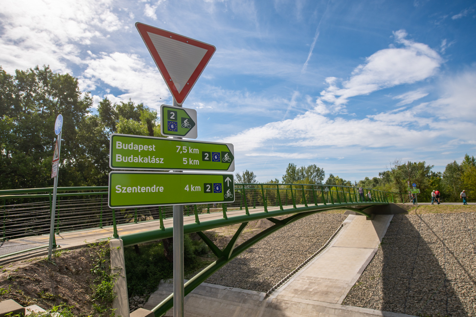 Átadták a HE-DO Kft. munkájával 5,6 kilométerrel bővült EuroVelo 6 kerékpárút új szakaszát. A frissen elkészült nyomvonal a Dera-patak fölötti új – 36 méter hosszú – híddal indul, majd Szentendre külterületén halad Budakalász irányába.