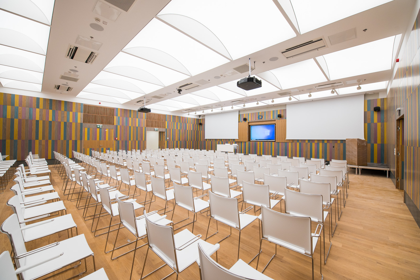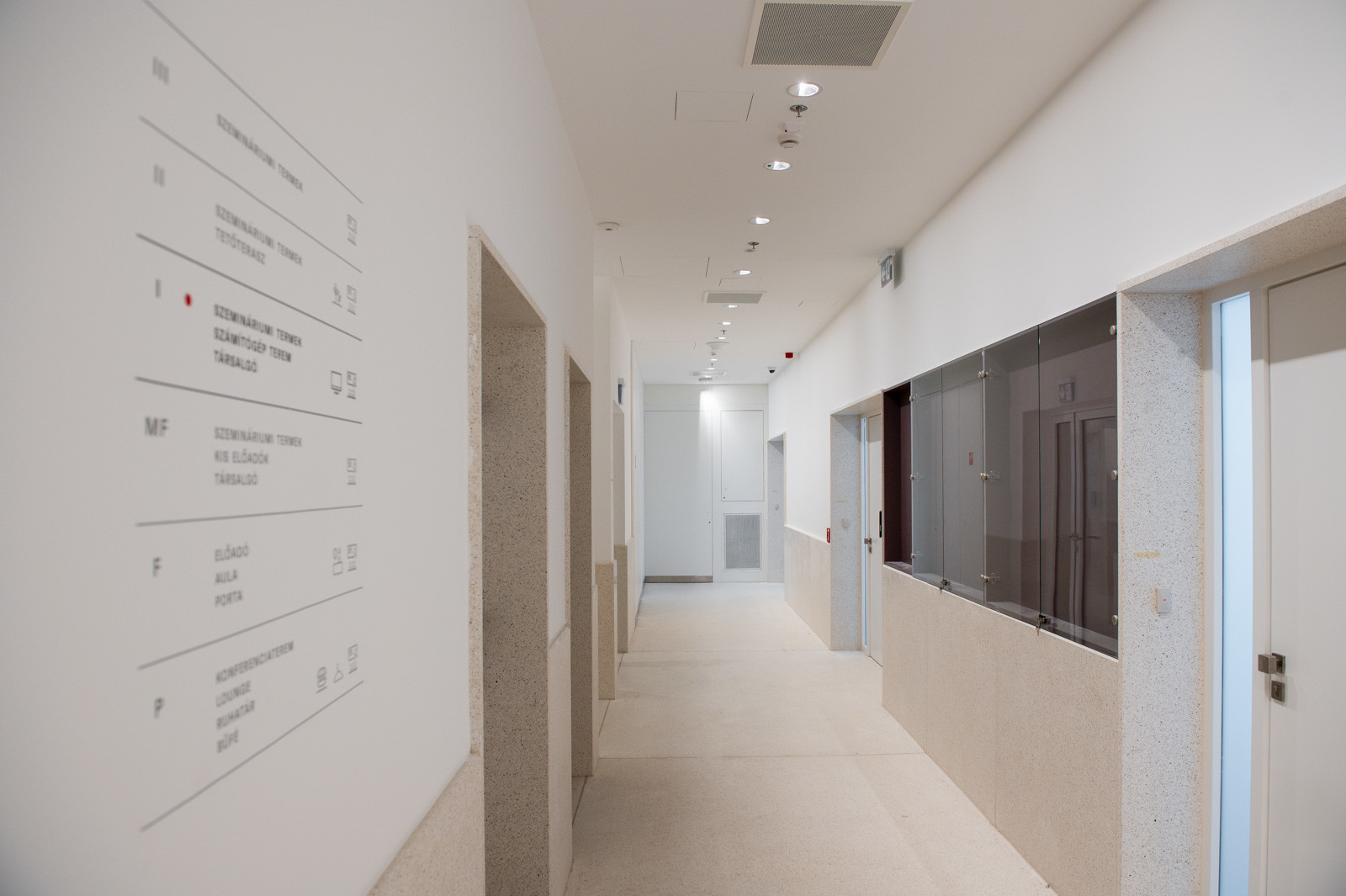 A modern belső kialakítással felépülő szárnyban a pincében és földszinti részen egy 198 fő befogadására alkalmas Konferenciaterem és egy 120 fő befogadására alkalmas előadóterem létesült, az emeleteken pedig kisebb előadókat, tantermeket és tanári szobákat alakítottak ki.