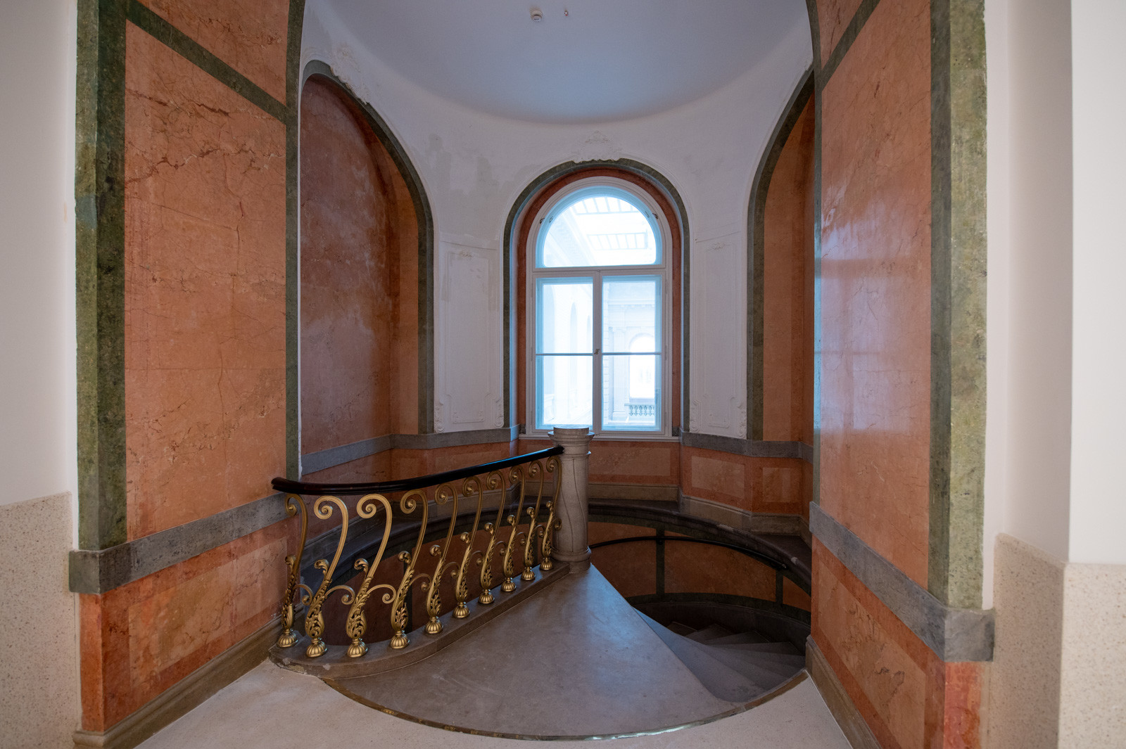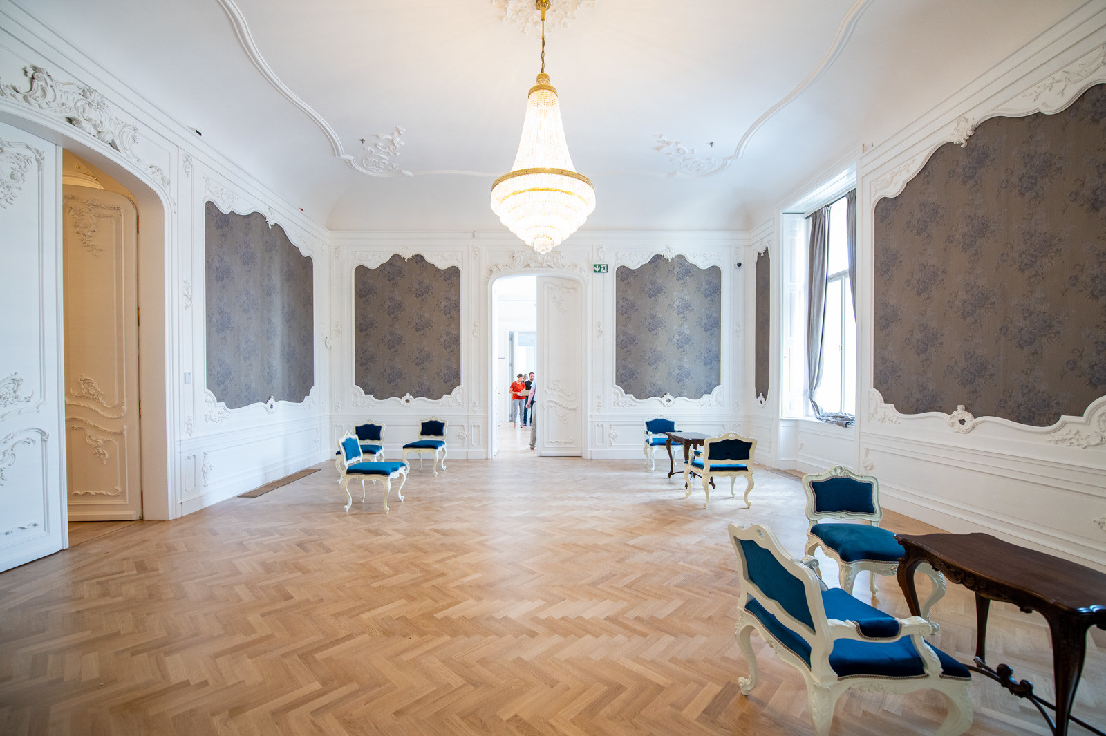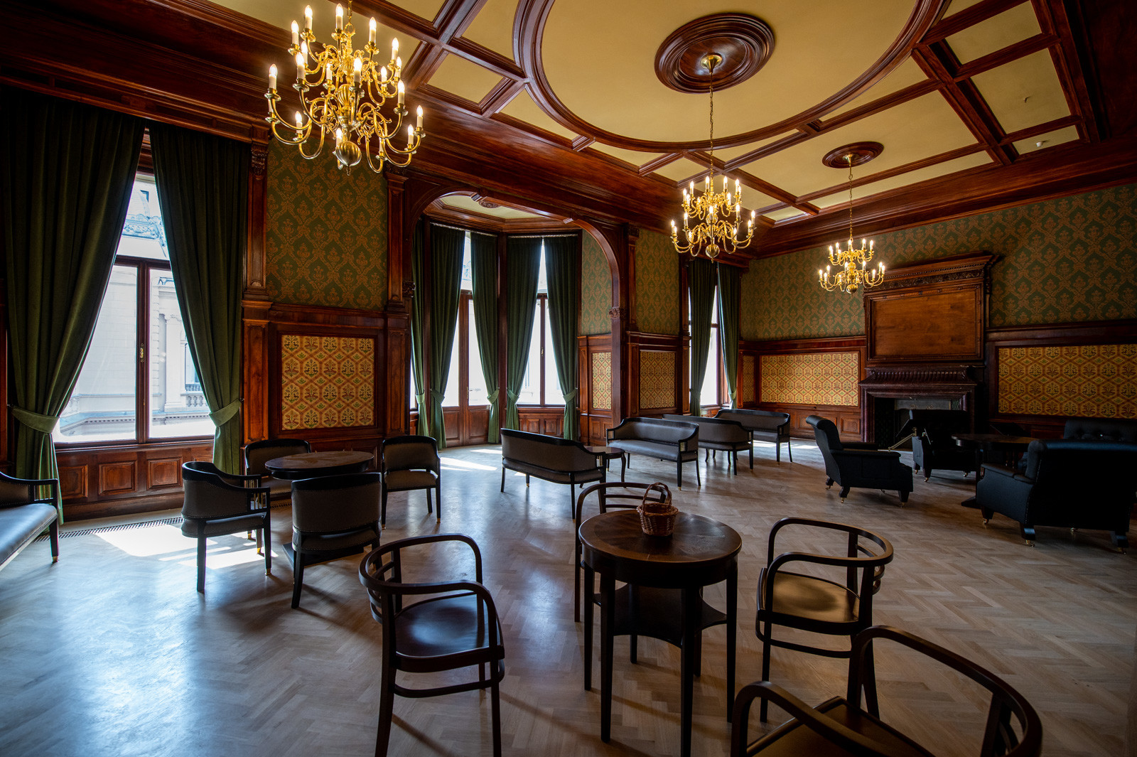 A palota díszein kívül az Operaház és a Parlament hasonló dekorációi is az iparművész munkái közé tartoznak. Az épület emeleti szintjén található bálteremben pedig Lotz Károly freskóját állították helyre korabeli fényképek alapján.