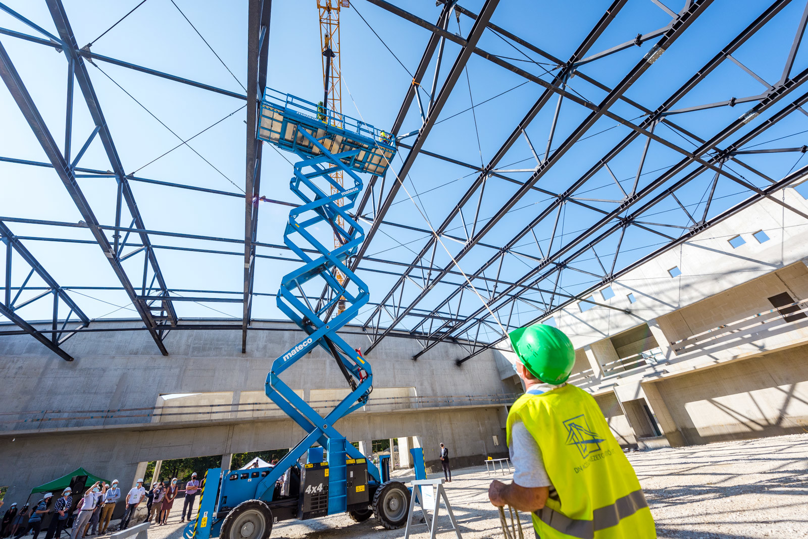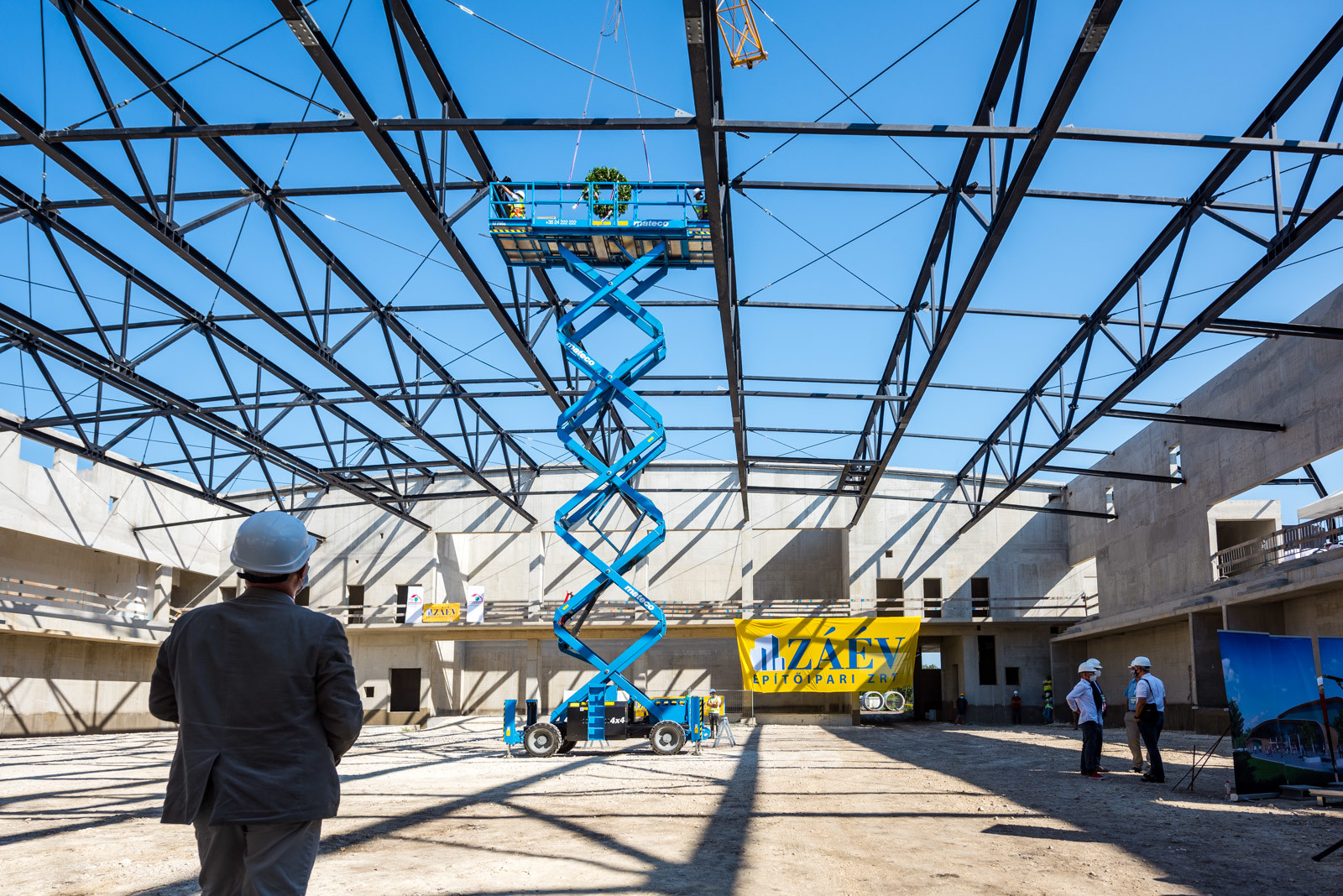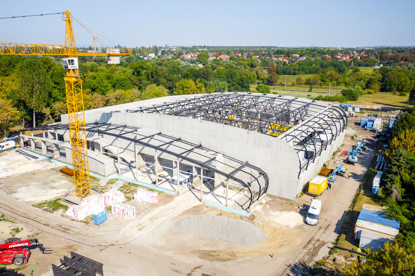 Elérte legmagasabb pontját a főváros XVII. kerületében, a közel 9 milliárd forintból épülő Rákosmenti Sport- és Rendezvénycsarnok, amely a ZÁÉV Zrt. és az Épkar Zrt. kivitelezésében valósul meg, az Óbuda Group pedig a tervezési programot, a projekt előkészítést, a generáltervezést és a költségszakértést végezte a projektben. A helyszínen ma tartották az épület bokrétaünnepségét, a tervek szerint nagyjából egy év múlva, 2021 nyarán fejeződik be a kivitelezése.