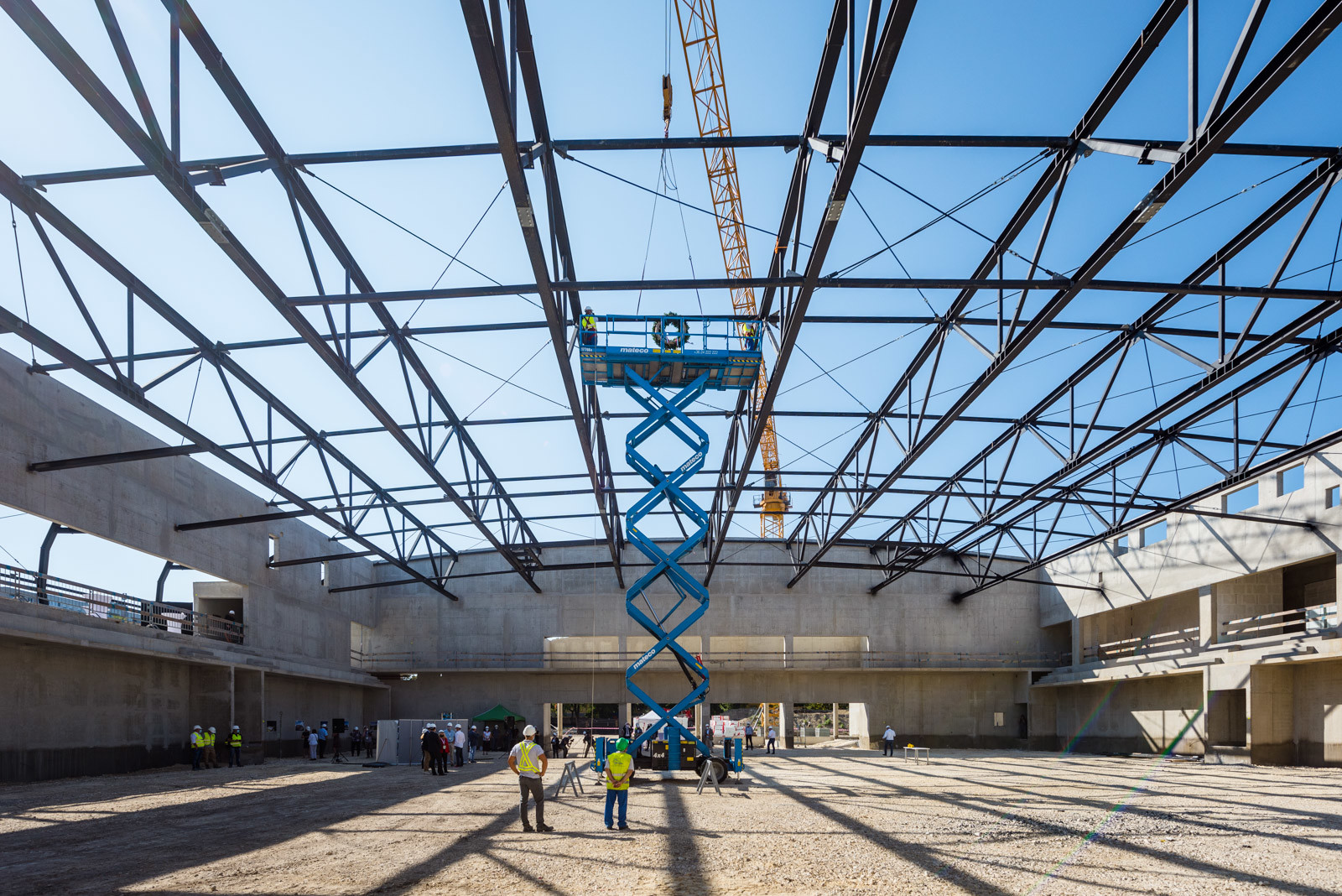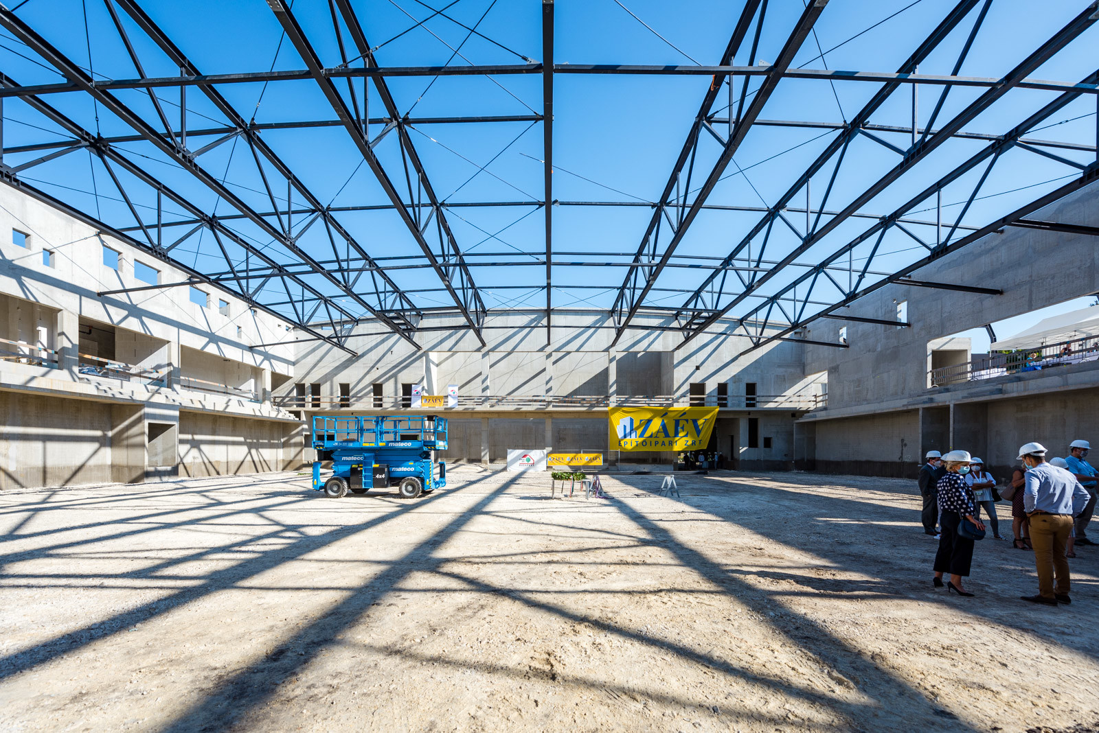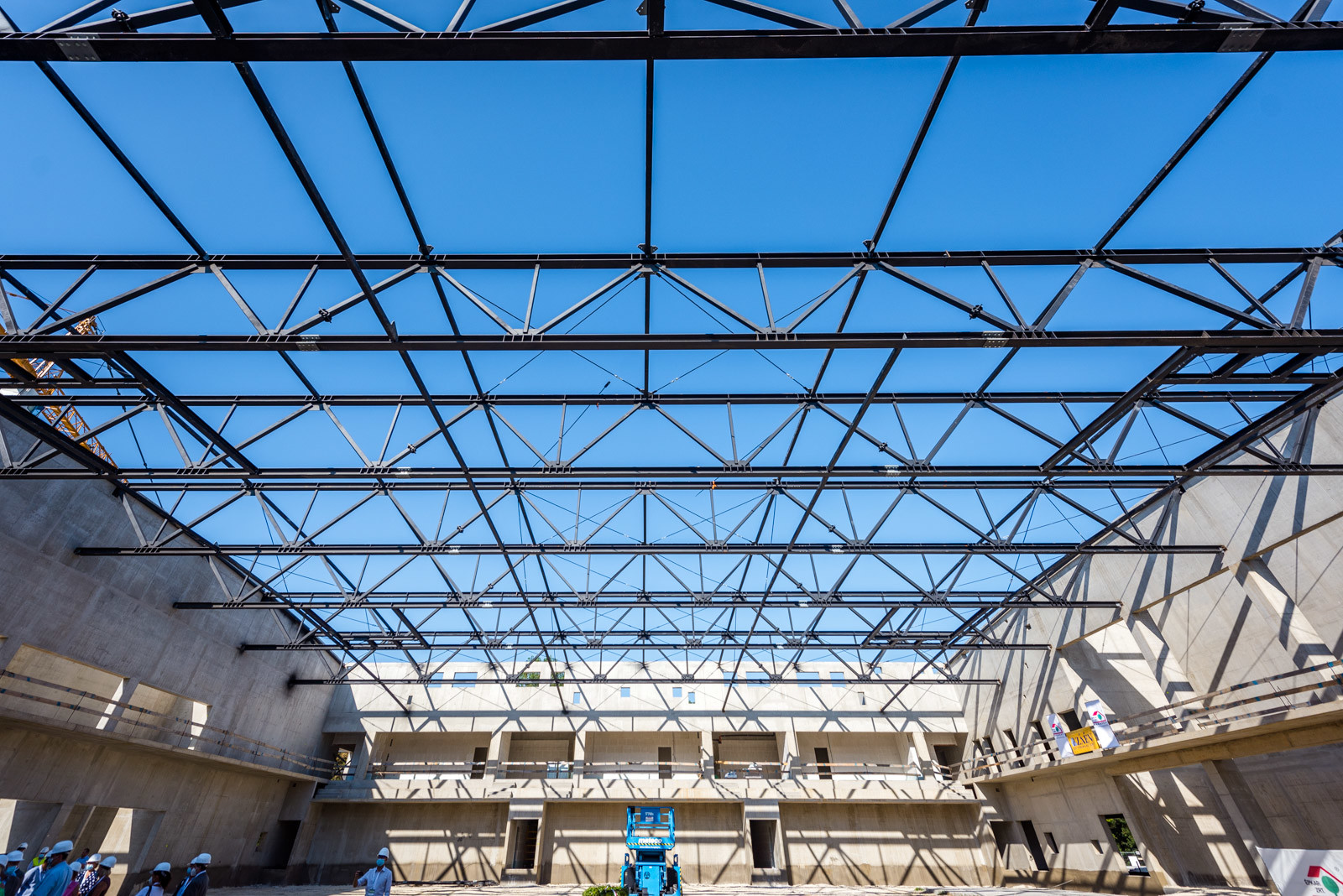Elérte legmagasabb pontját a főváros XVII. kerületében, a közel 9 milliárd forintból épülő Rákosmenti Sport- és Rendezvénycsarnok, amely a ZÁÉV Zrt. és az Épkar Zrt. kivitelezésében valósul meg, az Óbuda Group pedig a tervezési programot, a projekt előkészítést, a generáltervezést és a költségszakértést végezte a projektben. A helyszínen ma tartották az épület bokrétaünnepségét, a tervek szerint nagyjából egy év múlva, 2021 nyarán fejeződik be a kivitelezése.