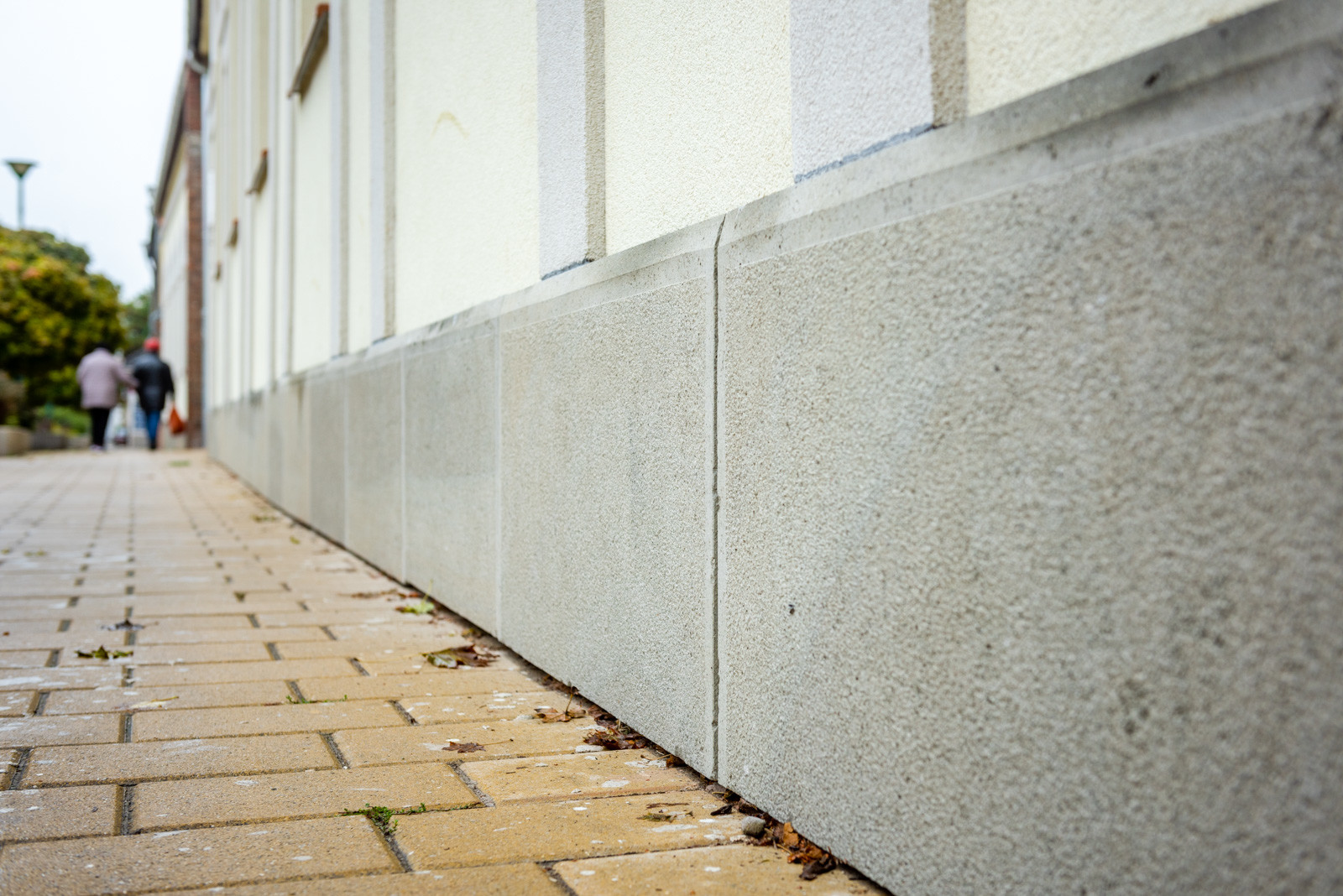 A petőfi utcai homlokzatnál továbbá a fal szellőzését is biztosító, a homlokzathoz illeszkedő andezit-lábazatot is kialakítottak. A munkálatokhoz közel 250 millió forint állami támogatás állt rendelkezésre, melyet az önkormányzat is kiegészített, így a projekt értéke közel 300 millió forintra nőtt. A kivitelezési munkálatokat a Horváth Építőmester Zrt. végezte.