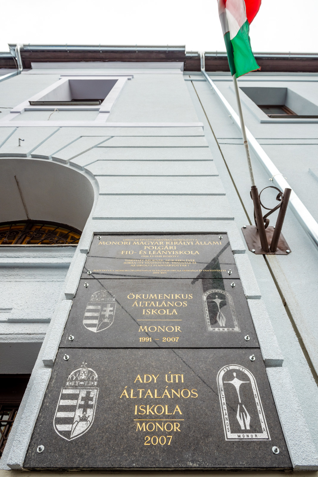 Továbbá az általános iskolára felkerült az alapításkor felvett neve: Magyar Királyi Állami Polgári Fiú és Leány Iskola, a régi képeslapokon fellelhető formában. „Ezzel is tisztelegve a múlt és őseink felé” – emelte ki az ügyvezető.