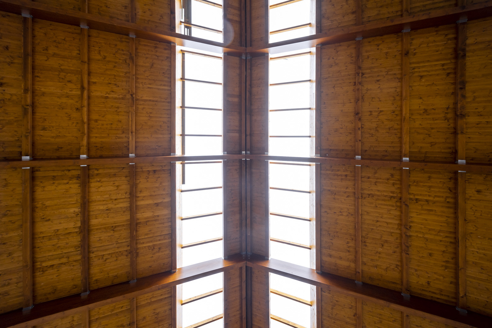 A monolitikus hatású épület jól illeszkedik a városias környezetbe. A tető a bejárati homlokzat felett emelkedő ívben tör fel, amely mögött a gépészeti egységek helyezkednek el. A különleges kialakítású tetőforma nem véletlen, feladata, hogy „elrejtse” a padlástér gépészeti elemeit.